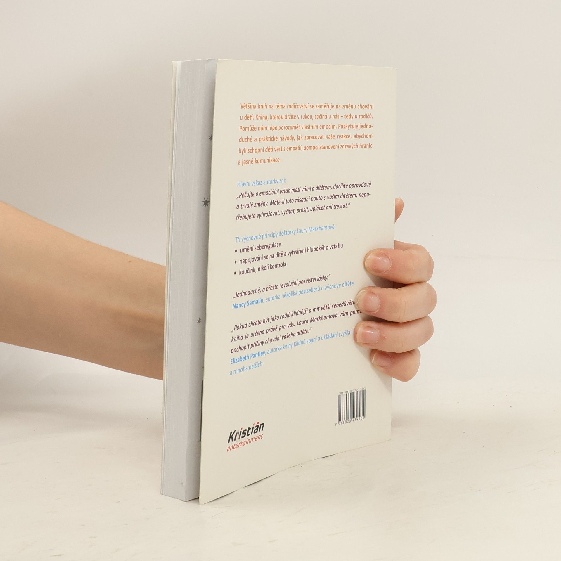Většina knih na téma rodičovství se zaměřuje na změnu chování u dětí. Kniha, kterou držíte v rukou, začíná u nás – tedy u rodičů. Pomůže nám lépe porozumět vlastním emocím. Poskytuje jednoduché a praktické návody, jak zpracovat naše reakce, abychom byli schopni děti vést s empatií, pomocí stanovení zdravých hranic a jasné komunikace. Hlavní vzkaz autorky zní: „Pečujte o emociální vztah mezi vámi a dítětem, docílíte opravdové a trvalé změny. Máte-li toto zásadní pouto s vaším dítětem, nepotřebujete vyhrožovat, vyčítat, prosit, uplácet ani trestat.“ Tři principy doktorky Laury Markhamové: • umění seberegulace • napojování se na dítě a vytváření hlubokého vztahu • koučink, nikoli kontrola