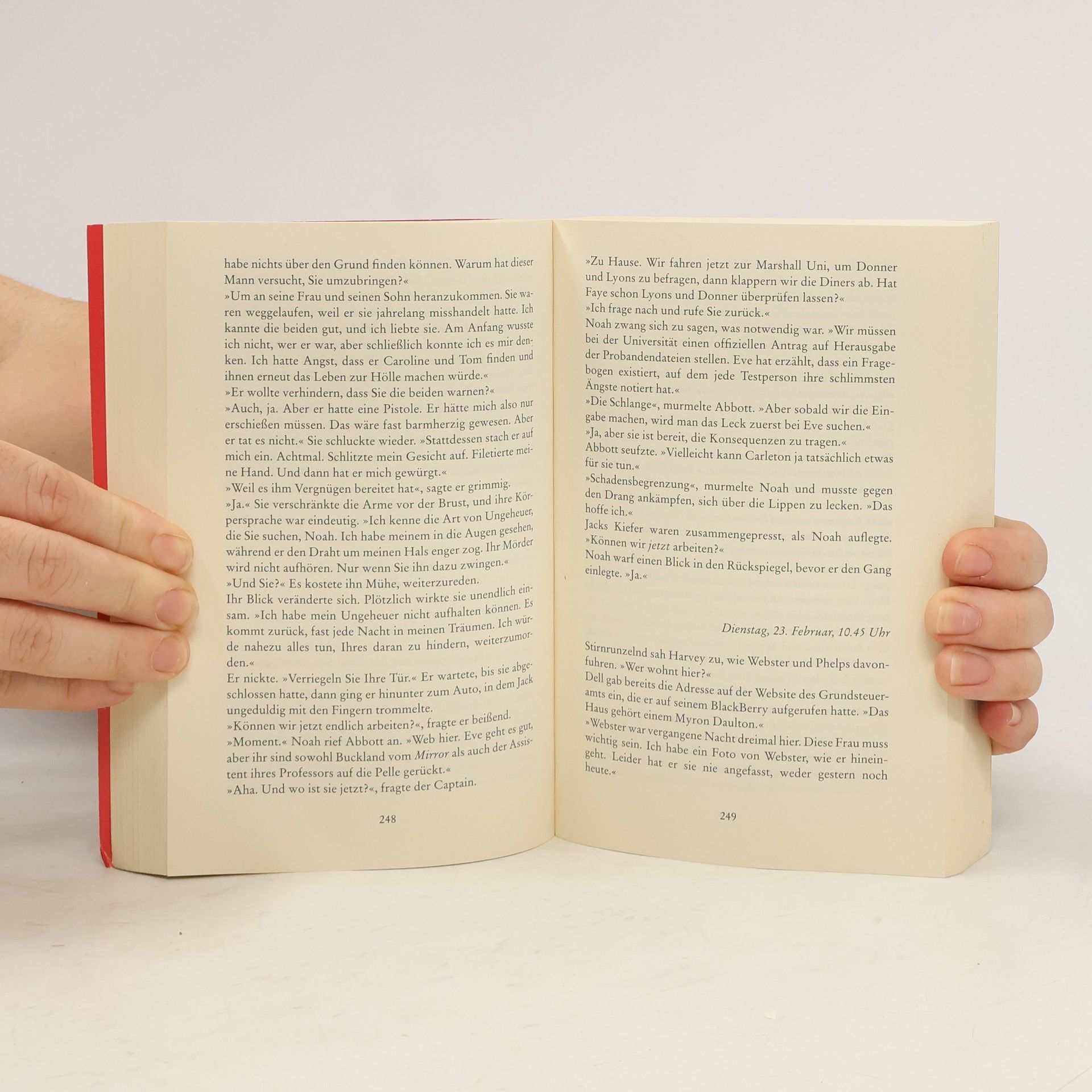 Eve Wilson hat die Hölle auf Erden erlebt. Nach einem Mordanschlag ist sie für immer gezeichnet. Dennoch versucht sie, sich eine neue Existenz aufzubauen. Sie studiert Psychologie und leitet ein Forschungsprojekt. Als jedoch sechs ihrer Testpersonen auf grausame Weise ums Leben kommen, hat Eve ein schockierendes Déjà-vu. Steht sie erneut auf der Liste eines psychopathischen Killers? Ein Fall für Detective Noah Webster, der die schöne und verletzliche Eve um jeden Preis schützen will …