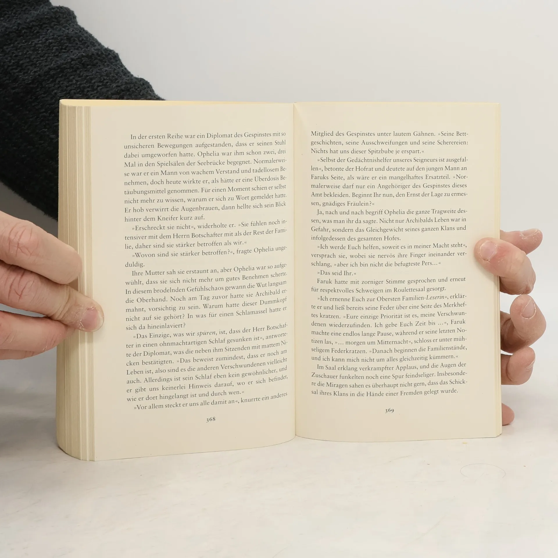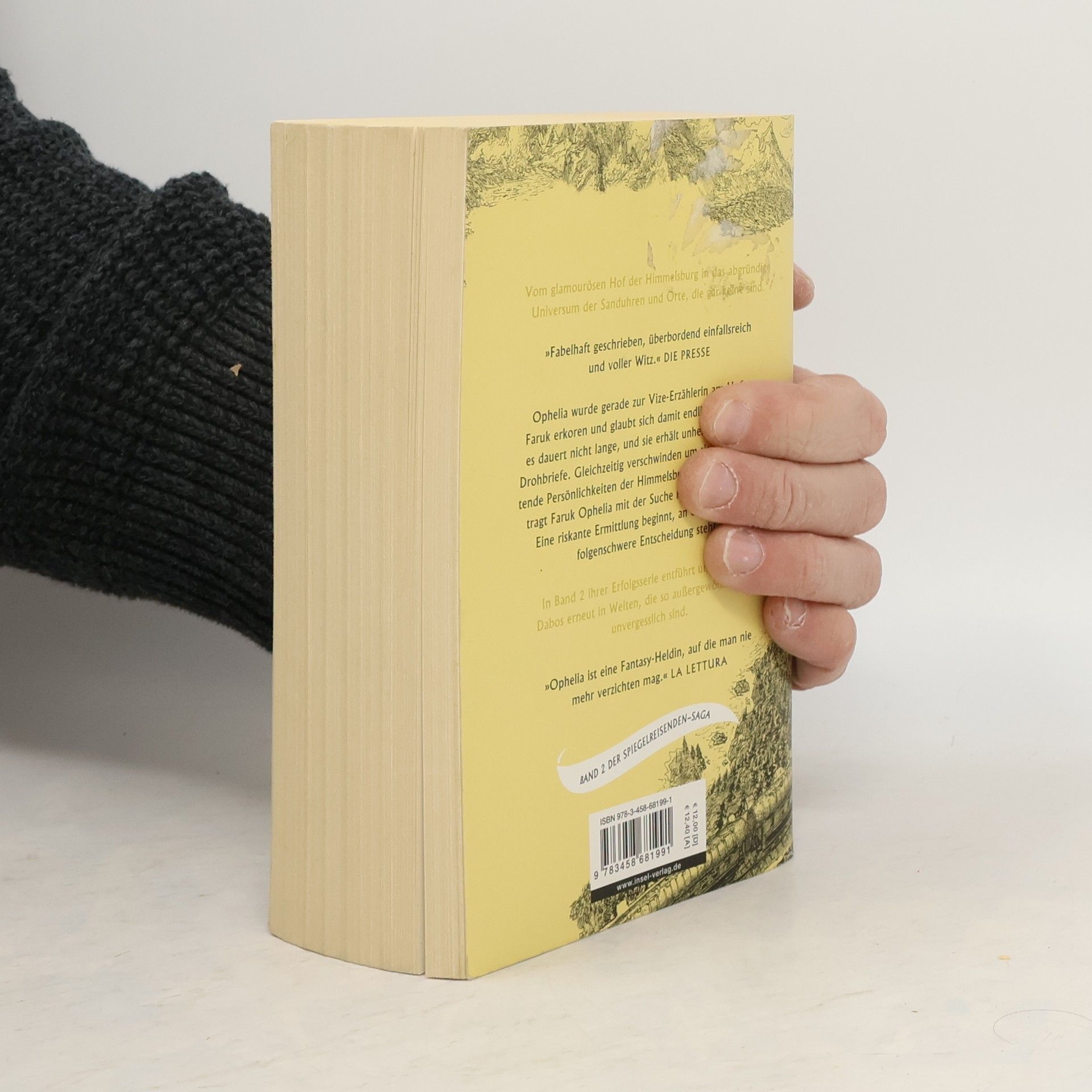 Ophelia wurde gerade zur Vize-Erzählerin am Hof von Faruk erkoren und glaubt sich damit endlich sicher. Doch es dauert nicht lange, und sie erhält unheilvolle anonyme Drohbriefe: Wenn sie ihre Hochzeit mit Thorn nicht absagt, wird ihr Übles widerfahren. Und damit scheint sie nicht die Einzige zu sein: Um sie herum verschwinden bedeutende Persönlichkeiten der Himmelsburg. Kurzerhand beauftragt Faruk Ophelia mit der Suche nach den Vermissten. Und so beginnt eine riskante Ermittlung, bei der es Ophelia nicht nur mit manipulierten Sanduhren, sondern auch mit gefährlichen Illusionen und zwielichtigen Gestalten zu tun bekommt. Am Ende steht eine folgenschwere Entscheidung. Vom glamourösen Hof der Himmelsburg in das abgründige Universum der Sanduhren und Orte, die gar keine sind – um ihr Leben sowie das ihrer Familie zu retten, muss Ophelia an ihre Grenzen gehen. Und das in einer Welt, in der sie so gut wie niemandem trauen kann, womöglich nicht einmal ihrem zukünftigen Ehemann Thorn?