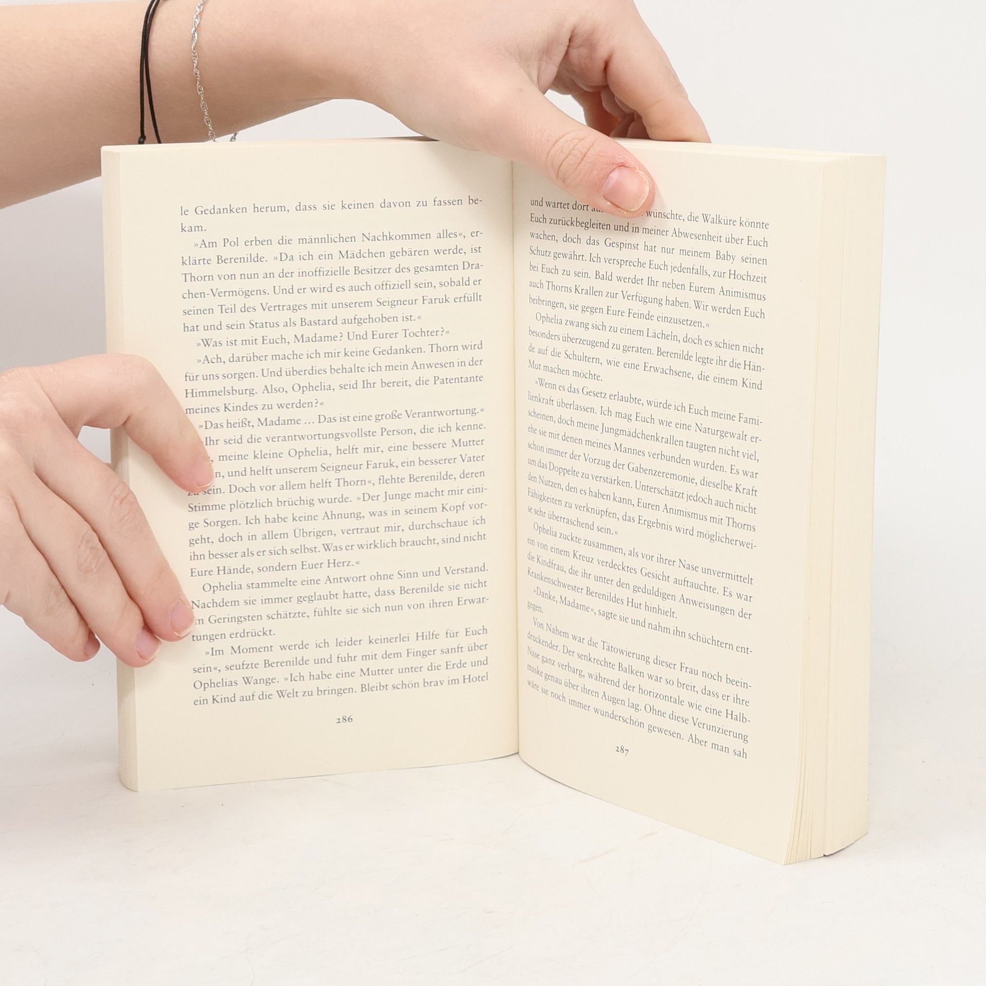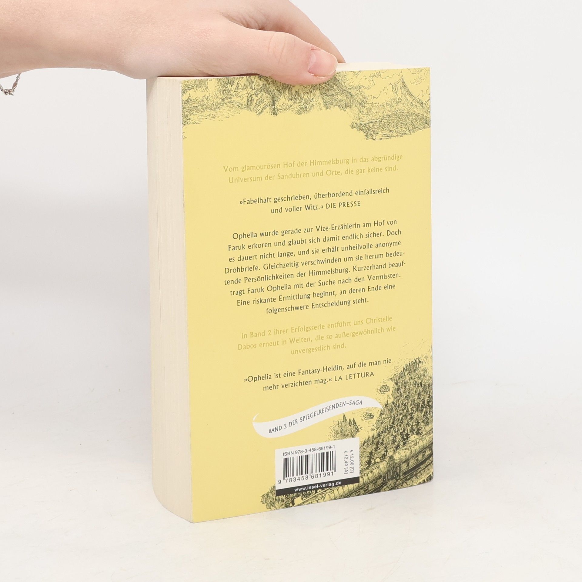 Ophelia wurde gerade zur Vize-Erzählerin am Hof von Faruk erkoren und glaubt sich damit endlich sicher. Doch es dauert nicht lange, und sie erhält unheilvolle anonyme Drohbriefe: Wenn sie ihre Hochzeit mit Thorn nicht absagt, wird ihr Übles widerfahren. Und damit scheint sie nicht die Einzige zu sein: Um sie herum verschwinden bedeutende Persönlichkeiten der Himmelsburg. Kurzerhand beauftragt Faruk Ophelia mit der Suche nach den Vermissten. Und so beginnt eine riskante Ermittlung, bei der es Ophelia nicht nur mit manipulierten Sanduhren, sondern auch mit gefährlichen Illusionen und zwielichtigen Gestalten zu tun bekommt. Am Ende steht eine folgenschwere Entscheidung. Vom glamourösen Hof der Himmelsburg in das abgründige Universum der Sanduhren und Orte, die gar keine sind – um ihr Leben sowie das ihrer Familie zu retten, muss Ophelia an ihre Grenzen gehen. Und das in einer Welt, in der sie so gut wie niemandem trauen kann, womöglich nicht einmal ihrem zukünftigen Ehemann Thorn?