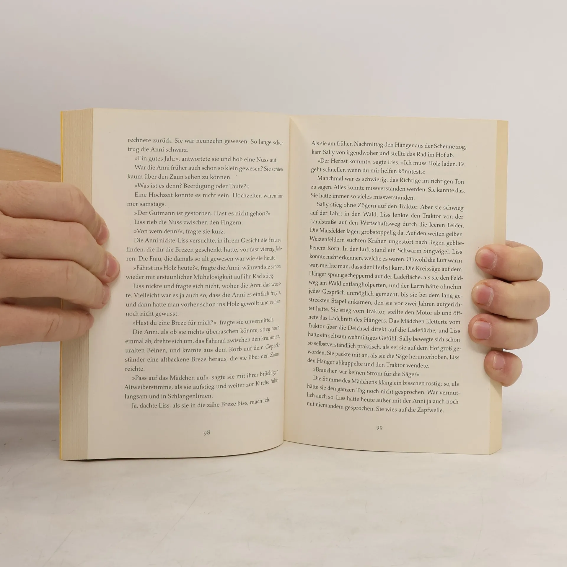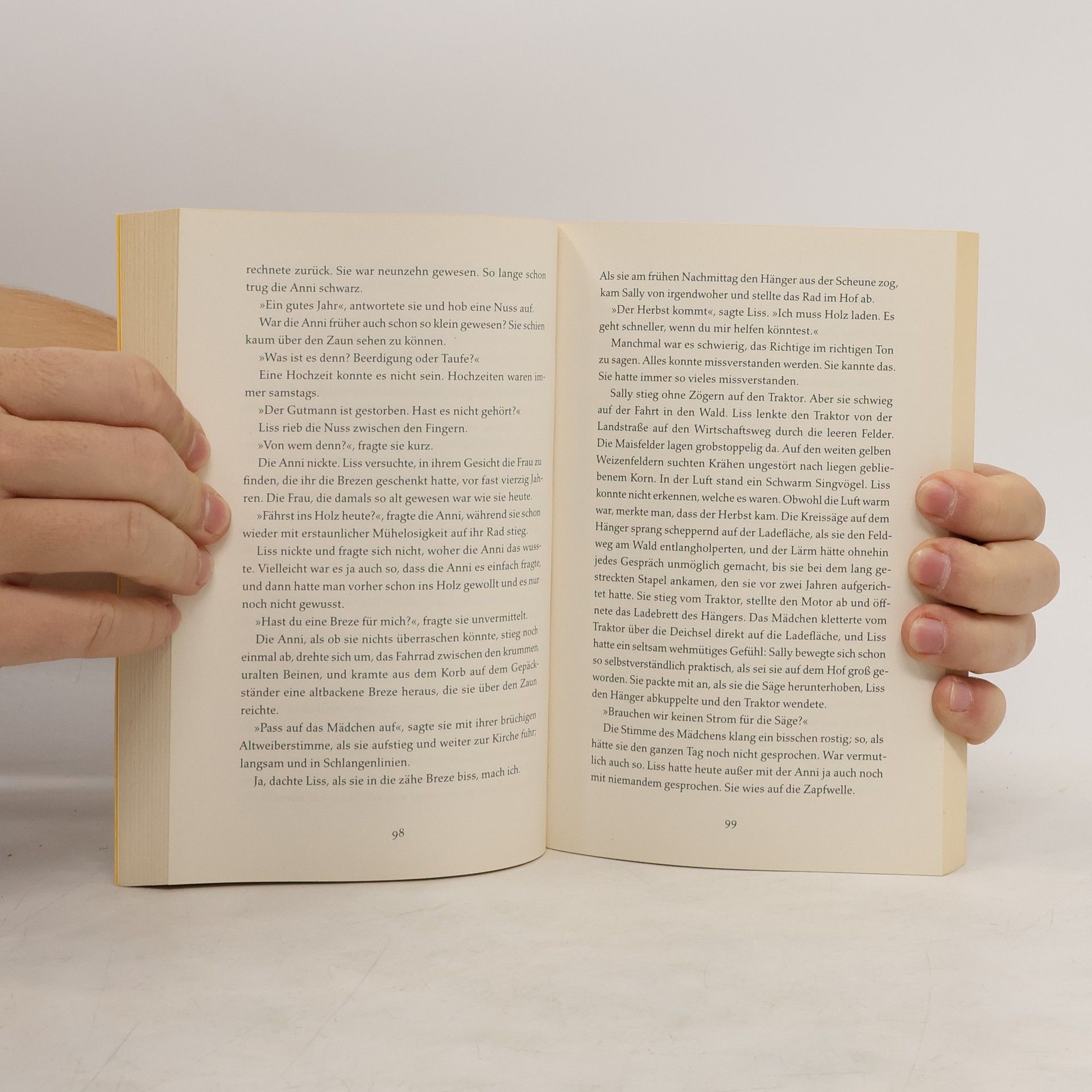 Sally und Liss: zwei Frauen, wie sie unterschiedlicher nicht sein könnten. Sally, kurz vor dem Abitur, will einfach in Ruhe gelassen werden. Sie hasst so ziemlich alles: Angebote, Vorschriften, Regeln, Erwachsene. Fragen hasst sie am meisten, vor allem die nach ihrem Aussehen. Liss ist eine starke, verschlossene Frau, die die Arbeit, die auf dem Hof anfällt, problemlos zu meistern scheint. Schon beim ersten Gespräch der beiden stellt Sally fest, dass Liss anders ist als andere Erwachsene. Kein heimliches Mustern, kein voreiliges Urteilen, keine misstrauischen Fragen. Liss bietet ihr an, auf dem Hof zu übernachten. Aus einer Nacht werden Wochen. Für Sally ist die ältere Frau ein Rätsel. Was ist das für Eine, die nie über sich spricht, die das Haus, in dem die frühere Anwesenheit anderer noch deutlich zu spüren ist, allein bewohnt? Während sie gemeinsam Bäume auszeichnen, Kartoffeln ernten und Liss die alten Birnensorten in ihrem Obstgarten beschreibt, deren Geschmack Sally so liebt, kommen sich die beiden Frauen näher. Und erfahren nach und nach von den Verletzungen, die ihnen zugefügt wurden.