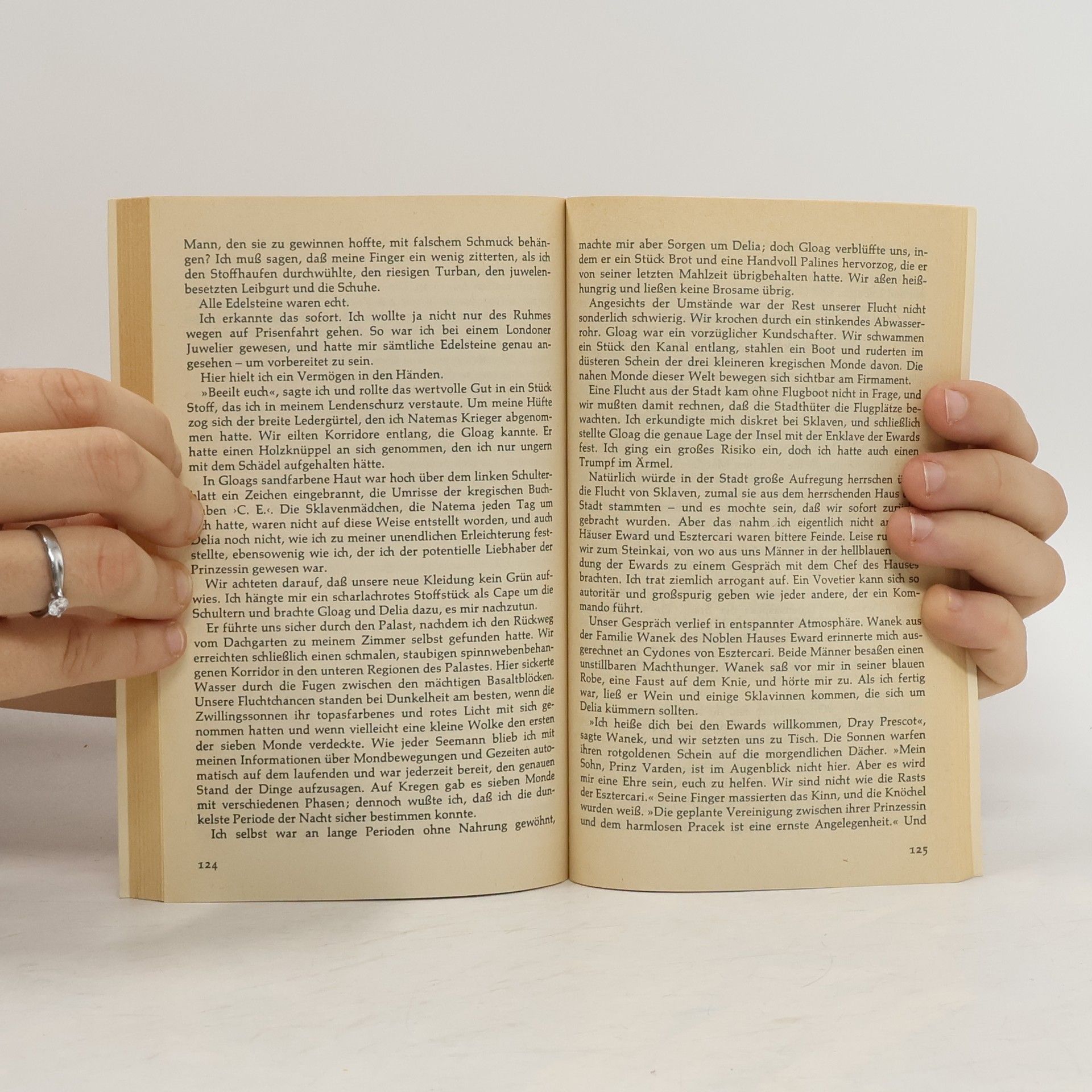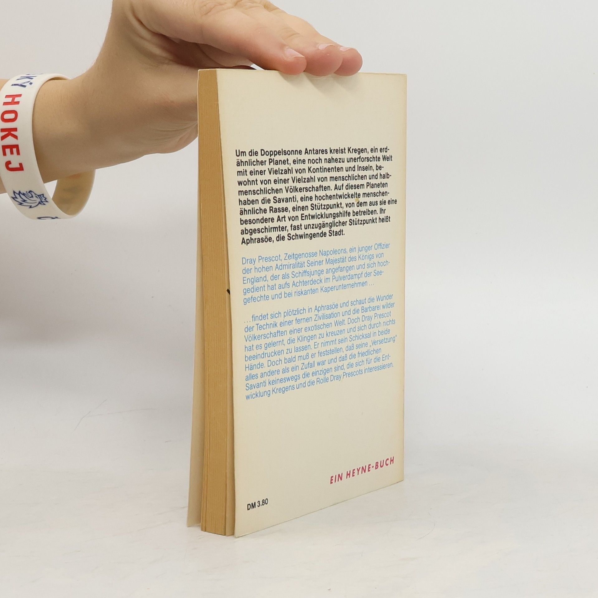 Um die Doppelsonne Antares kreist Kregen, ein erdähnlicher Planet, eine noch nahezu unerforschte Welt mit einer Vielzahl von Kontinenten und Inseln, bewohnt von einer Vielzahl von menschlichen und halbmenschlichen Völkerschaften. Auf diesem Planeten haben die Savanti, eine hochentwickelte menschenähnliche Rasse, einen Stützpunkt, von dem aus sie eine besondere Art von Entwicklungshilfe betreiben. Ihr abgeschirmter, fast unzugänglicher Stützpunkt heißt Aphrasöe, die Schwingende Stadt. Dray Prescot, Zeitgenosse Napoleons, ein junger Offizier der hohen Admiralität Seiner Majestät des Königs von England, der als Schiffsjunge angefangen und sich hochgedient hat aufs Achterdeck im Pulverdampf der Seegefechte und bei riskanten Kaperunternehmen ... ... findet sich plötzlich in Aphrasöe und schaut die Wunder der Technik einer fernen Zivilisation und die Barbarei wilder Völkerschaften einer exotischen Welt. Doch Dray Prescot hat es gelernt, die Klingen zu kreuzen und sich durch nichts beeindrucken zu lassen. Er nimmt sein Schicksal in beide Hände. Doch bald muss er feststellen, dass seine \"Versetzung\" alles andere als ein Zufall war und dass die friedlichen Savanti keineswegs die einzigen sind, die sich für die Entwicklung Kregens und die Rolle Dray Prescots interessieren.