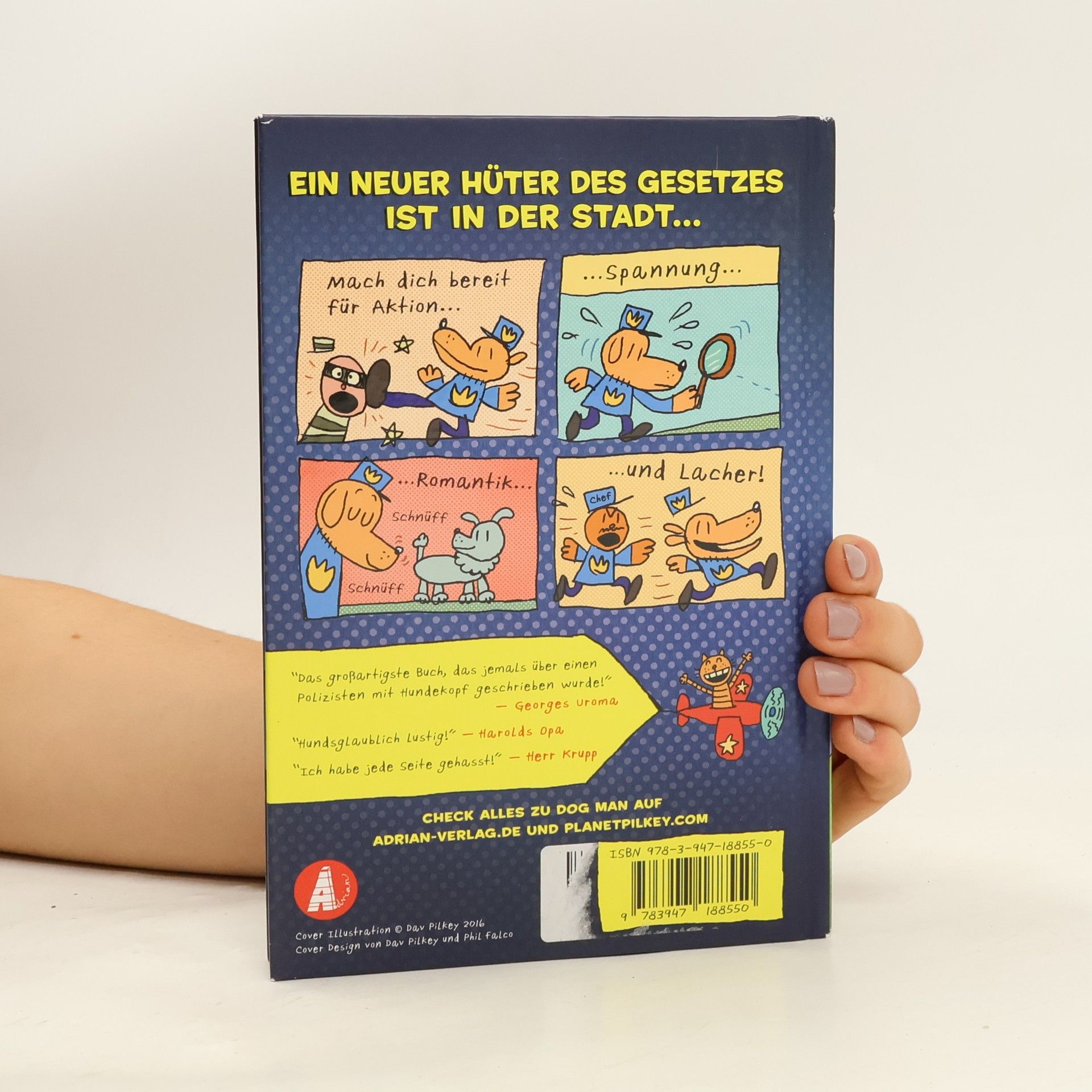 Heule vor Lachen mit dem Mega-Bestseller aus Amerika mit mehr als 25 Millionen verkauften Exemplaren! Es gibt einen neuen Superhelden in der Stadt. Dog Man ist halb Hund, halb Mensch und voller Tatendrang! Kein Bösewicht ist nun mehr sicher. Wird er Petey, die fieseste Katze der Welt überlisten können? Mach dich bereit für Spannung und jede Menge Lacher!- So lustig und spannend kann Lesen sein. - Millionen begeisterter Kinder feiern die Abenteuer des kleinen Superhelden.- Farbige Illustrationen auf jeder Seite.- Neuer Comic-Trend, der sogar Lesemuffel motiviert.- Der Autor Dav Pilkey ist einer der meistegelesenen Autoren weltweit bei Lesern im Grundschulalter.