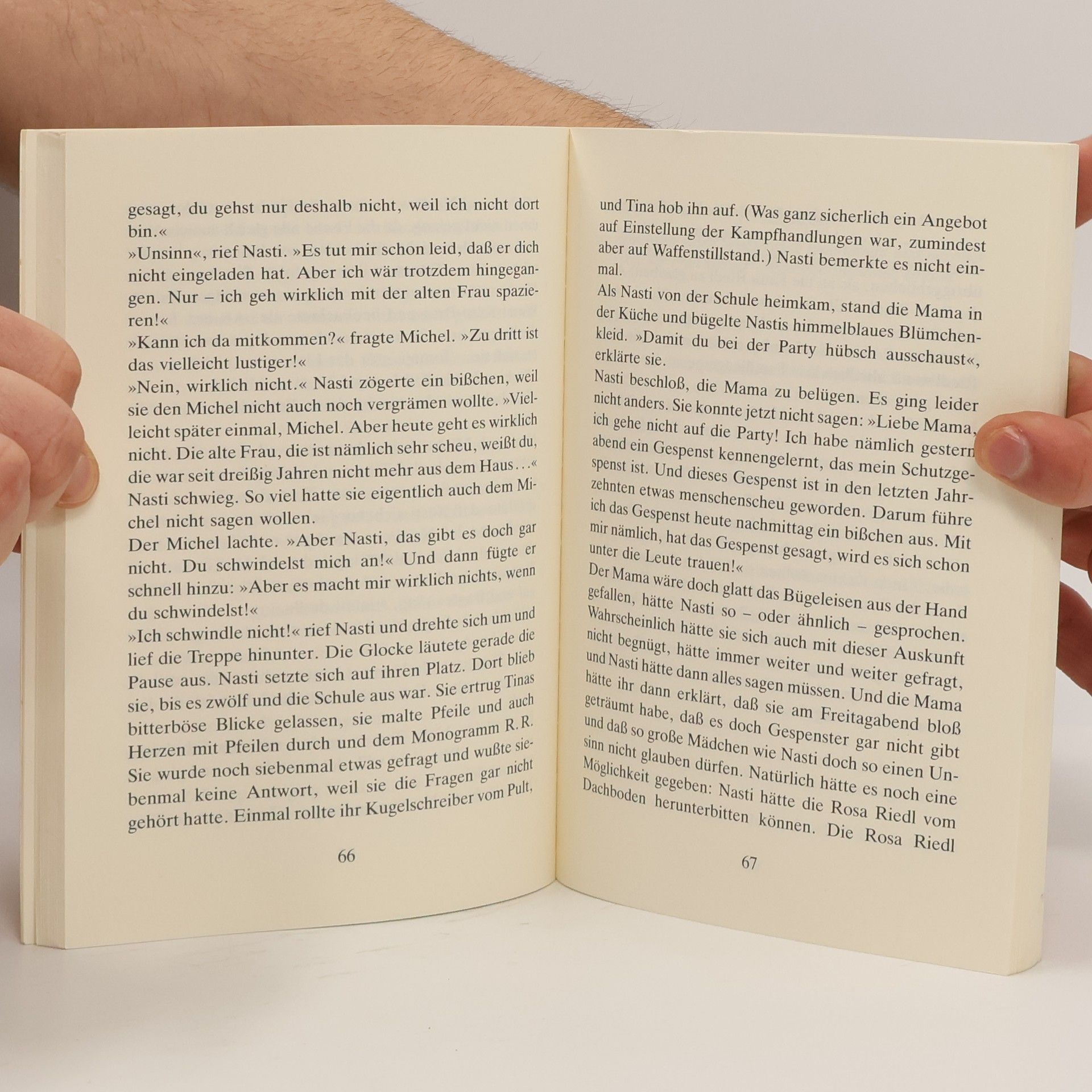 Wer hätte nicht gern ein Schutzgespenst? Nasti hat Glück – sie macht Bekanntschaft mit Rosa Riedl. Ein Klassiker der Kinderliteratur. Nasti hat Angst, vor allem und jedem. Hat Angst im Keller, Angst vor Hunden, hat Angst, allein in der Wohnung zu sein. Da bekommt sie unerwartet Hilfe, von einem couragierten, liebenswerten Gespenst. Rosa Riedl heißt es und greift energisch in Nastis Leben ein. Damit ist für reichlich Aufregung und viel Komik gesorgt, denn Nastis Umgebung bleiben gewisse gespenstische Vorkommnisse natürlich nicht verborgen.