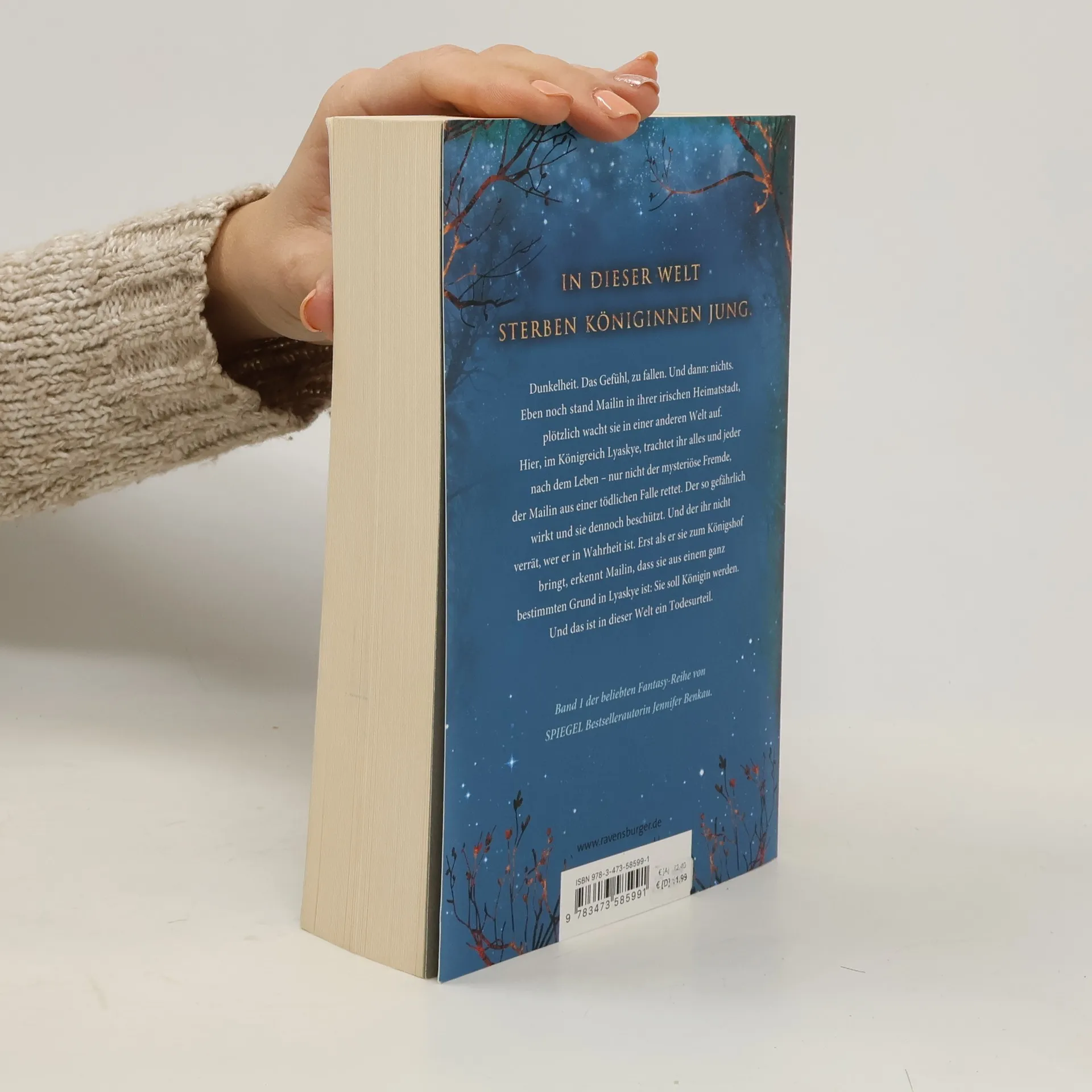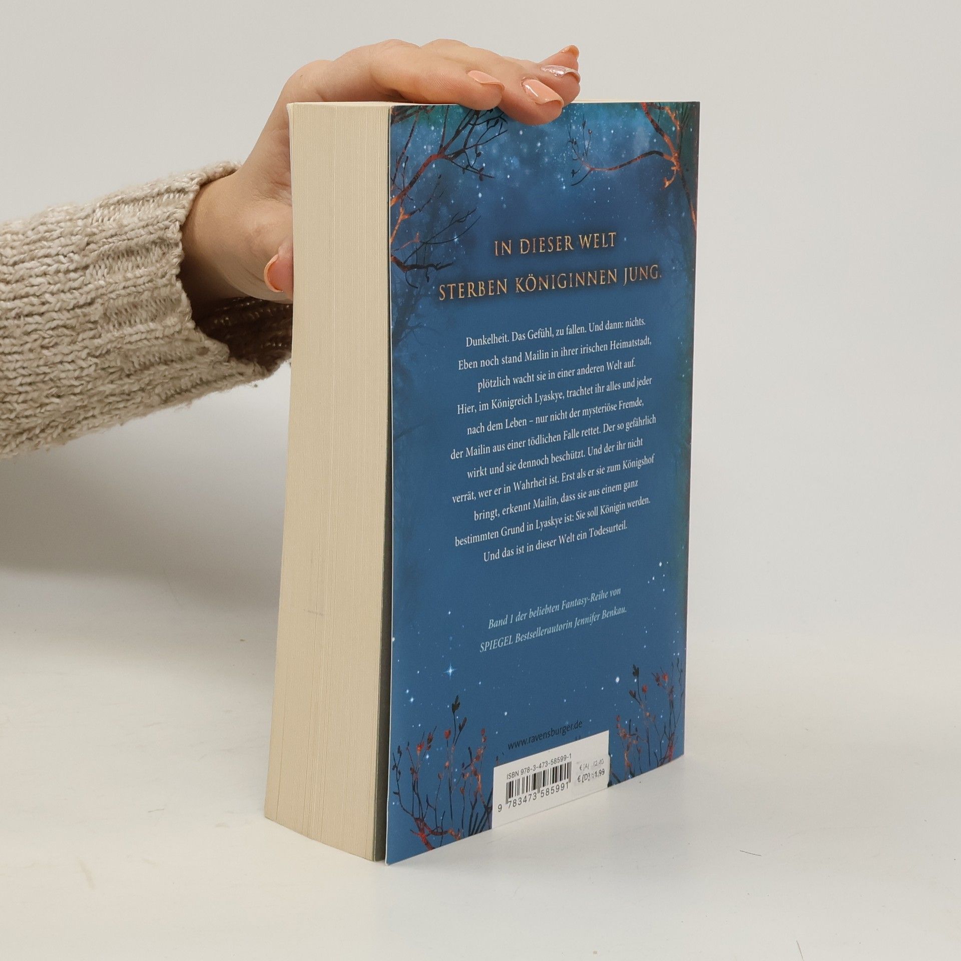 In dieser Welt sterben Königinnen jung. Dunkelheit. Das Gefühl, zu fallen. Und dann: nichts. Eben noch stand Mailin in ihrer Heimatstadt, plötzlich wacht sie in einer anderen Welt auf. Im Königreich Lyaskye trachtet ihr alles und jeder nach dem Leben – nur nicht der mysteriöse Fremde, der Mailin aus einer Falle rettet. Der so gefährlich wirkt und sie dennoch beschützt. Erst als er sie zum Königshof bringt, erkennt Mailin, dass sie nicht ohne Grund in Lyaskye ist: Sie soll Königin werden. Und das ist in dieser Welt ein Todesurteil. Band 1 der High-Romantasy-Reihe von SPIEGEL-Bestsellerautorin Jennifer Benkau Herzzerreißend. Episch. Atemberaubend. Jennifer Benkaus Romantasy-Reihen „One True Queen“, „Das Reich der Schatten“ und „The Lost Crown“ spielen in derselben Fantasy-Welt, können aber unabhängig voneinander gelesen werden. Sie sind in dieser Reihenfolge erschienen: One True Queen, Band 1: Von Sternen gekrönt One True Queen, Band 2: Aus Schatten geschmiedet Das Reich der Schatten, Band 1: Her Wish So Dark Das Reich der Schatten, Band 2: His Curse So Wild The Lost Crown, Band 1: Wer die Nacht malt The Lost Crown, Band 2: Wer das Schicksal zeichnet New-Adult-Romance von Jennifer Benkau: A Reason To Stay (Liverpool-Reihe 1) A Reason To Hope (Liverpool-Reihe 2)