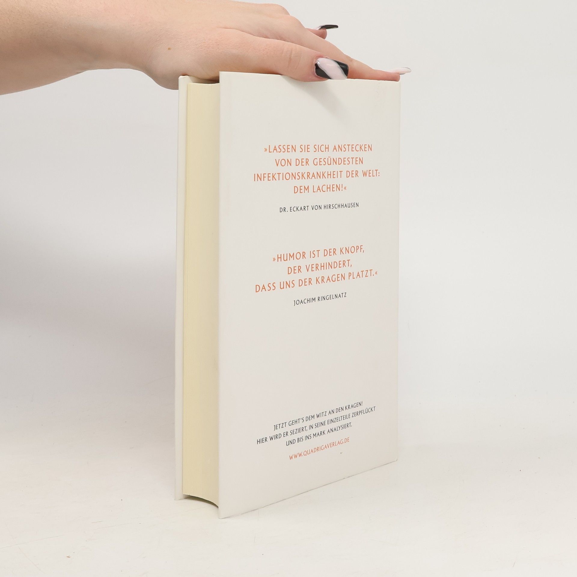 Seit seiner Jugend sammelt Hellmuth Karasek, Journalist und Schriftsteller, Witze in allen Varianten. Diktatorenwitze, jüdische Witze, Arztwitze, Irrenwitze, Männerwitze, Frauenwitze, Elefantenwitze – kein Lebensbereich, der nicht als Witz taugt. Viele davon gibt er in seinem Buch preis. Natürlich interessiert er sich dabei auch für den geistigen Hintergrund, für Freuds psychoanalytische Deutung, für die Psychologie hinter der Pointe: Was macht Witze witzig? Gibt es ganz neue oder nur immer wiederkehrende Varianten? Ist der Witz eine wirksame Waffe der Unterdrückten? Unterscheidet sich der Humor von Frauen und Männern? So macht er sich stark für eine fast vergessene Kultur, die angeblich keine ist. Er versteht den Witz als die kürzeste und präziseste Form von erzählter Literatur. Romanautoren brauchen Hunderte Seiten, um die Realität zu erfassen, ein Witz kann dies in wenigen Zeilen auf den Punkt bringen. Angeregt wurde Karaseks Buch von gemeinsamen Auftritten mit dem Arzt, Bestsellerautor und erfolgreichen Komiker Eckart von Hirschhausen.