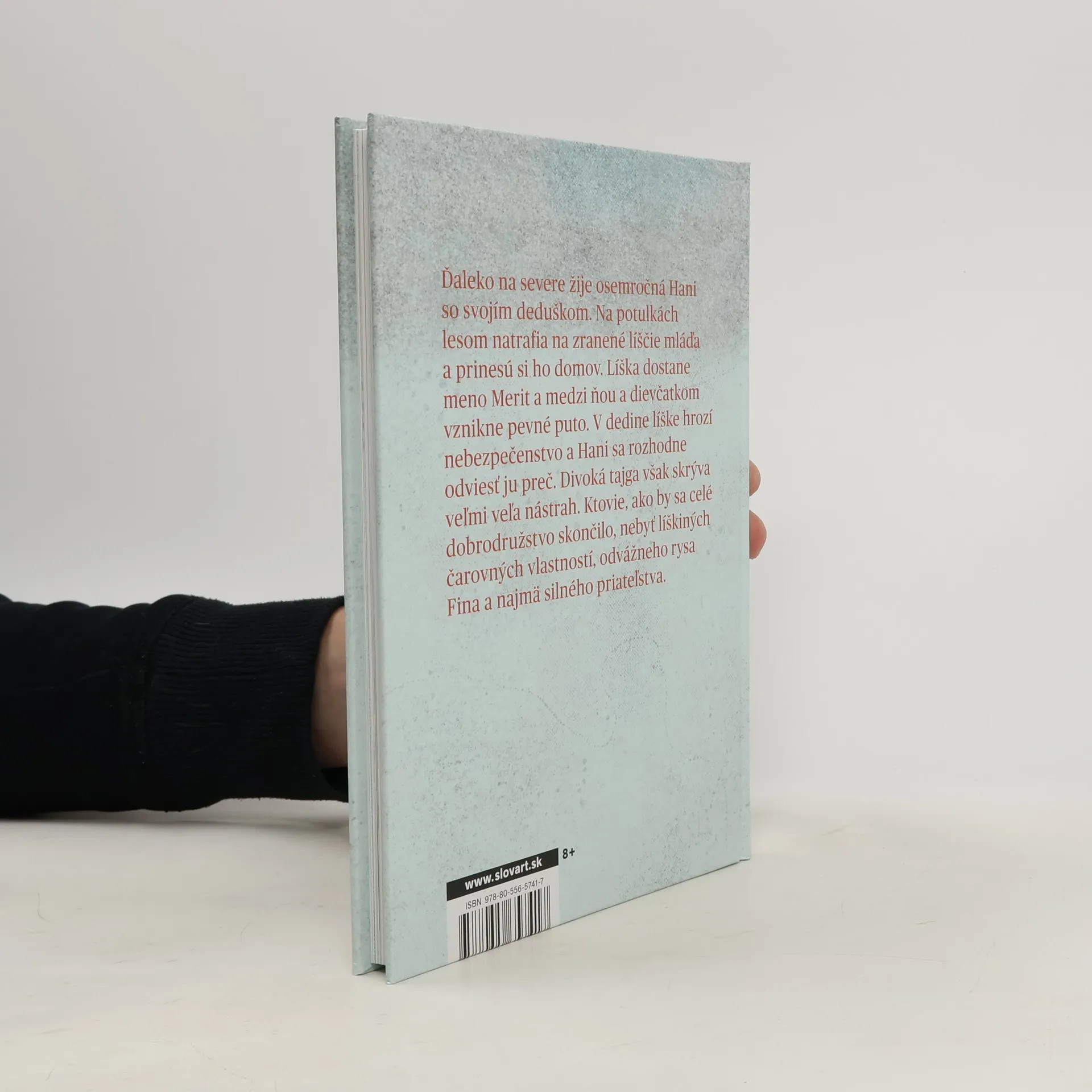 V malej dedine ďaleko na severe žije osemročná Hani so svojím starým otcom. V jeden deň natrafia na zranené líščie mláďa a prinesú si ho domov. Líška dostane meno Merit a medzi ňou a dievčatkom vznikne pevné priateľstvo. Onedlho však v dedine zmizne maličké dieťa a miestny šaman usúdi, že ho uniesla líška. Poverčiví dedinčania sa okamžite vyberú na lov. Hani si uvedomí, aké nebezpečenstvo hrozí jej milovanej líške, a rozhodne sa ju zachrániť. Divoká tajga však skrýva veľmi veľa nástrah. Ktovie, ako by sa celé dobrodružstvo skončilo, nebyť líškiných čarovných vlastností a odvážneho rysa, ktorý sa k obom pripojí.Svoj prekrásny príbeh o nevšednom priateľstve dieťaťa, líšky a divého rysa autorka doplnila aj množstvom originálnych legiend a čarovných opisov severskej prírody.