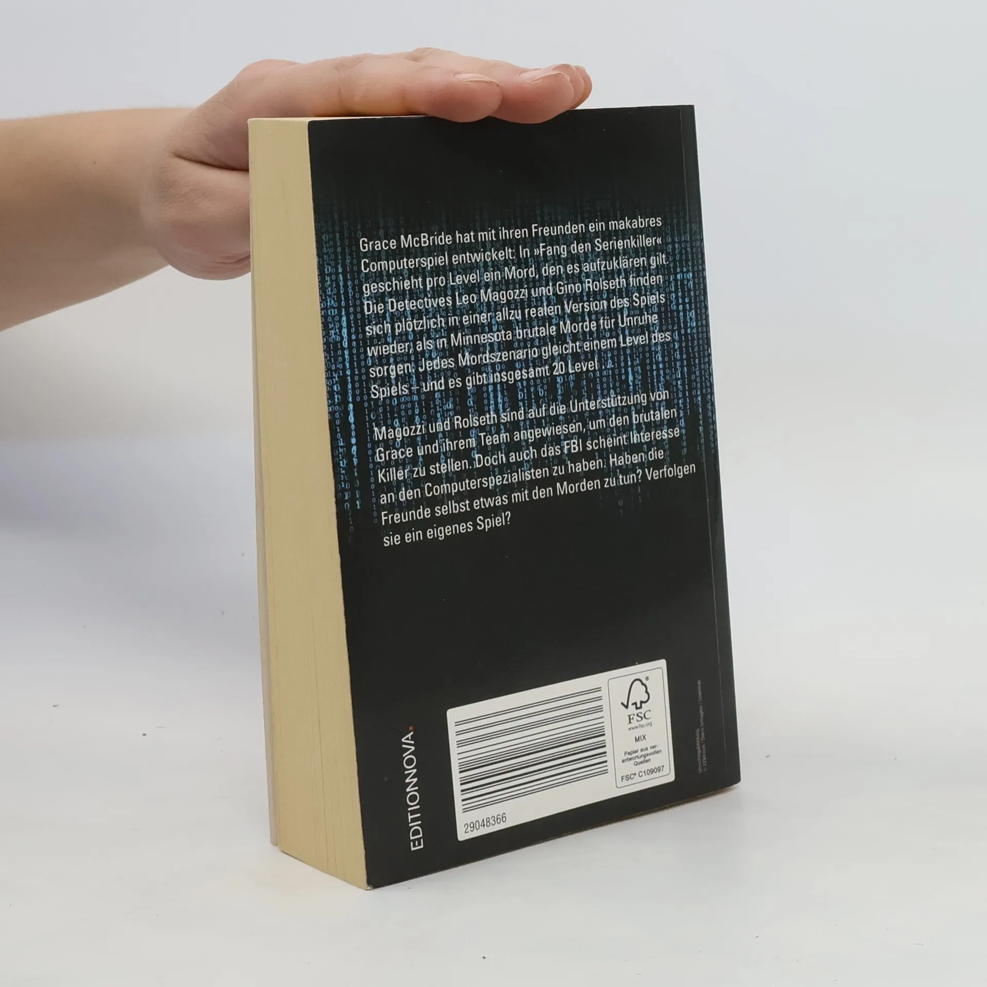 “Lesen sie dieses Buch auf keinen Fall... abends im Bett, solange sie nicht alle Termine für den nächsten Tag abgesagt haben, warnt “Kirkus Reviews” vor dem fulminanten Thriller-Debüt des Autorenteams aus Mutter und Tochter.Fünf befreundete Computerfreaks haben ihr Internet-Game “Fang den Serienkiller” online gestellt. Doch ein Spieler lässt die Morde detailgetreu und äußerst grausam Wirklichkeit werden. Die Cops in Minneapolis und im verschlafenen Wisconsin wissen: Das Spiel hat achtzehn Levels, und die Zeit drängt. In einem furiosen Showdown zeigt das Böse schließlich sein Gesicht.“Ein exzellenter Thriller mit glaubwürdigen, lebendigen Charakteren, der den Leser unerbittlich in einen Mahlstrom von Obsession und Gewalt zieht.” (Philip Kerr)