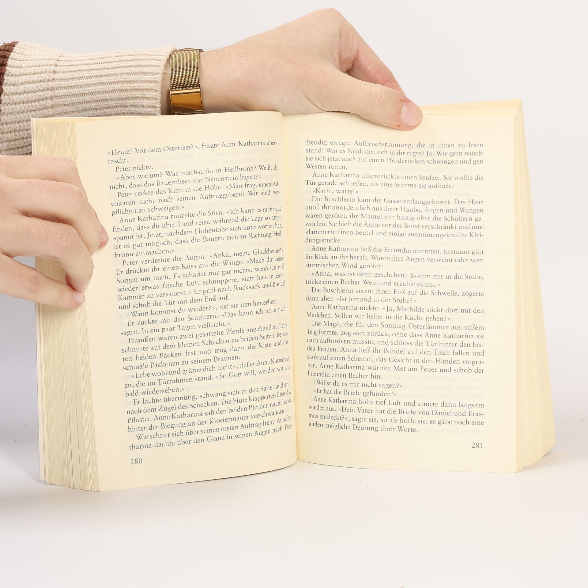 Auf Drängen ihrer Familie und nicht aus Liebe hat Anne Katharina Vogelmann den Salzsieder und Ratsherrn Michel geheiratet. Als die Unruhen der Bauernkriege und ihre zu allem entschlossenen Anhänger nach Schwäbisch-Hall vordringen, befindet sich unter ihnen auch Rugger, Katharinas große Jugendliebe. Plötzlich steht sie ihm wieder gegenüber, jenem Mann, der ihr den ersten unschuldigen Kuss raubte – und kann sich der erneut aufflammenden Leidenschaft nicht entziehen. Bald gerät Anne Katharina zwischen die Fronten der verfeindeten Parteien. Sie muss sich entscheiden – nicht nur auf welcher Seite sie steht, sondern auch zwischen ihrem Ehemann und ihrer Jugendliebe.