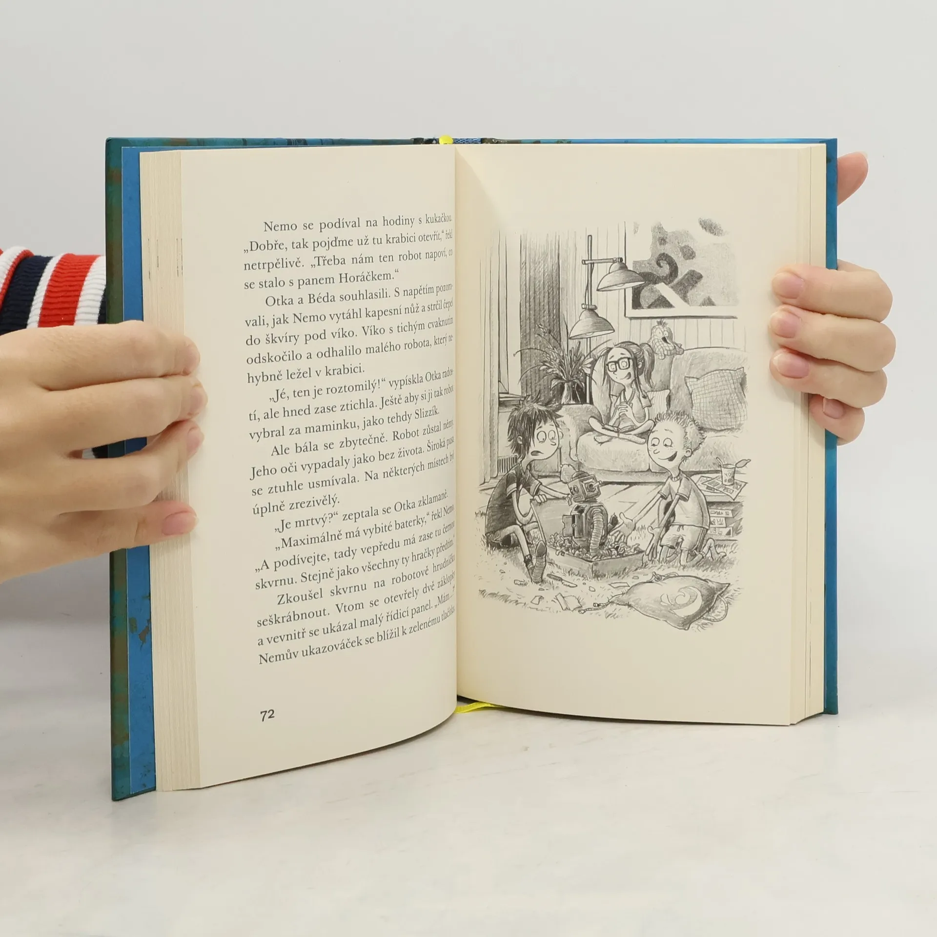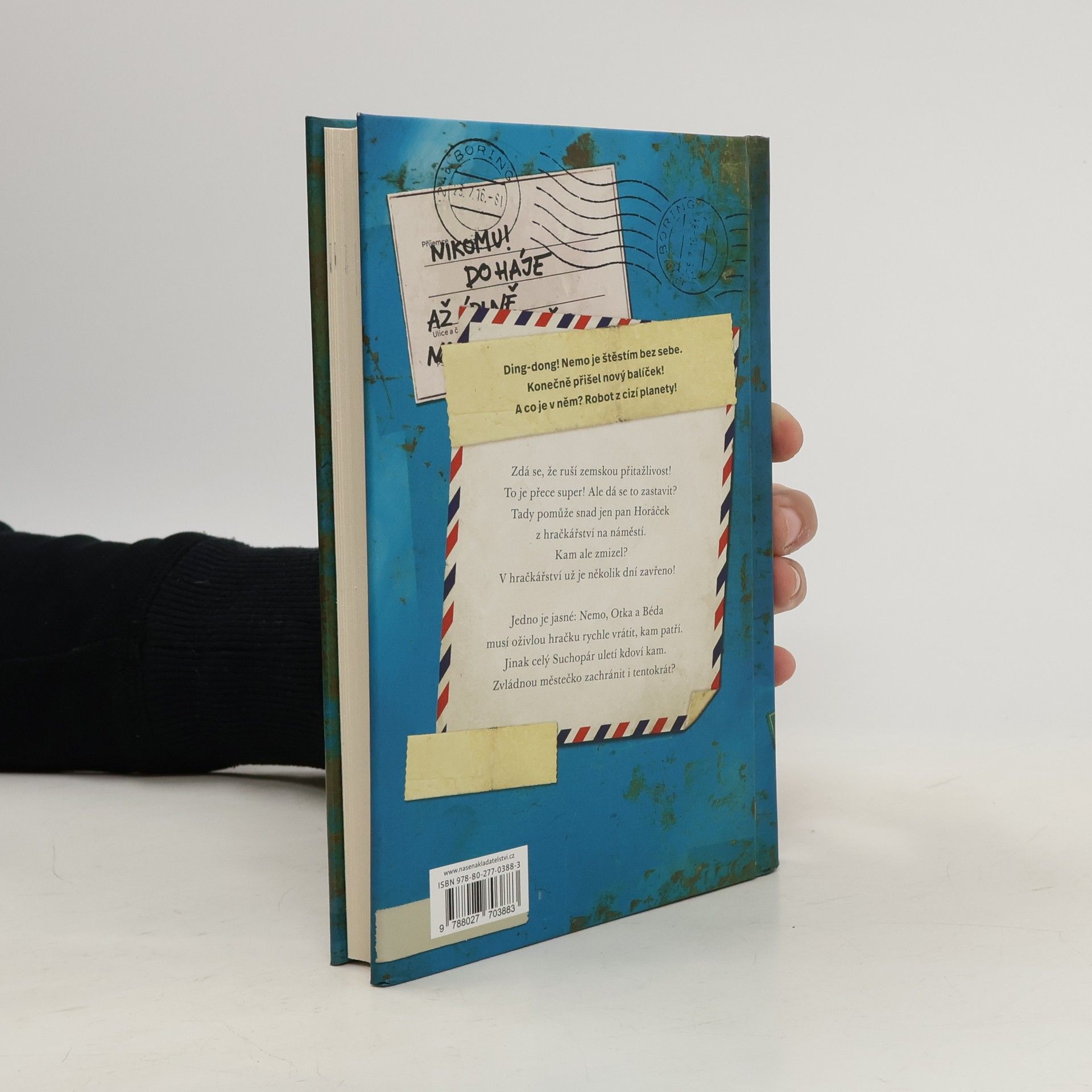 Ding-dong! Nemo je štěstím bez sebe. Konečně přišel nový balíček! A co je v něm? Robot z cizí planety! Zdá se, že s ním mizí zemská přitažlivost. Páni! Ale jak se to dá zastavit? Tady snad pomůže jen pan Horáček z hračkářství na náměstí. Kam ale zmizel? V hračkářství už je několik dní zavřeno a nikdo nevěří, že tady něco nehraje! Jedno je jasné: Nemo, Otka a Béda musí živou hračku rychle vrátit, kam patří. Jinak celý Suchopár uletí, kdo ví kam. Zvládnou to tentokrát? Šestý příběh oblíbené série se spoustou nezaměnitelných obrázků Fréderica Betranda je opět plný dobrodružství a vtipných zápletek a jistě potěší děti i dospělé. Při čtení na dobrou noc se možná budou cítit zvláštně lehcí…