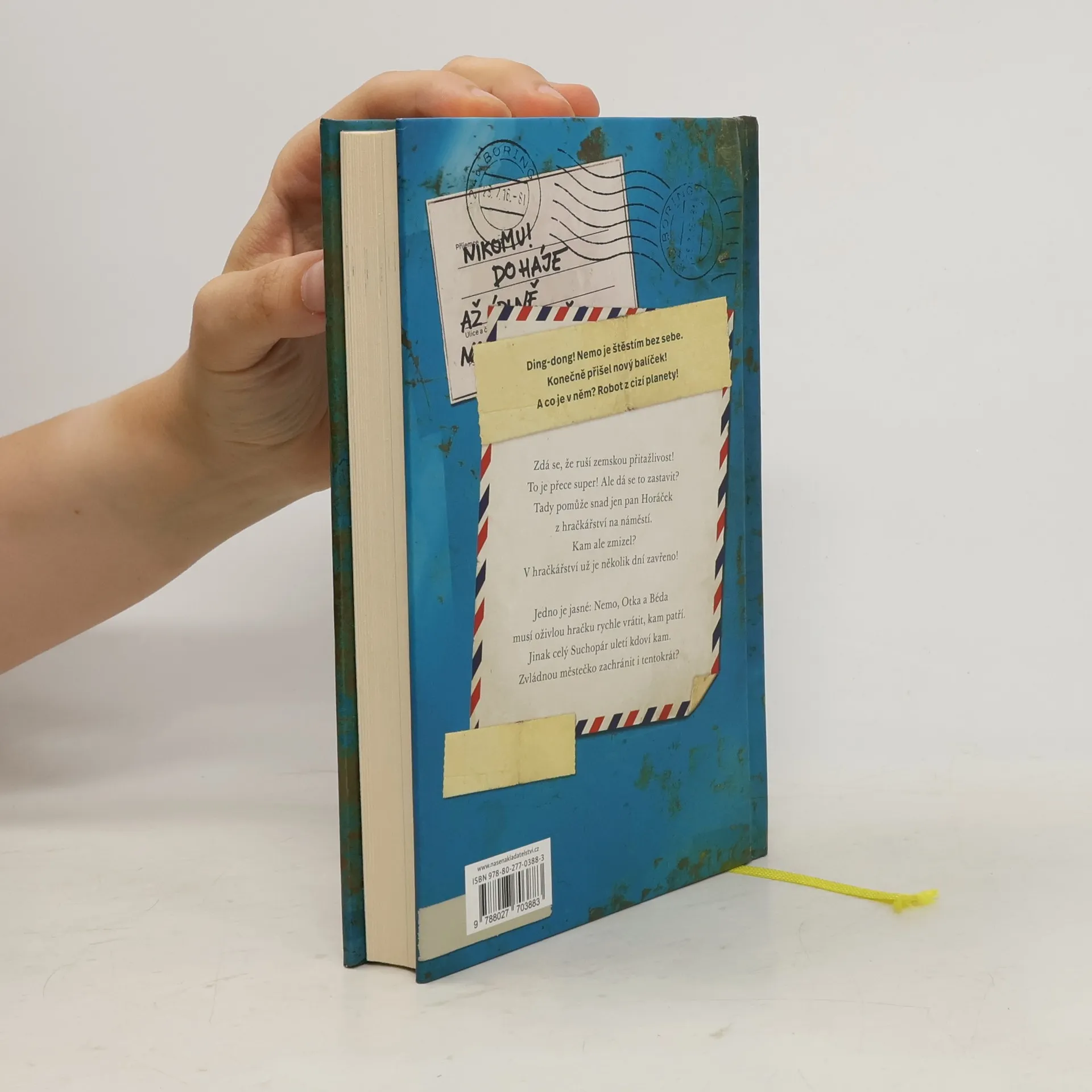 Ding-dong! Nemo je štěstím bez sebe. Konečně přišel nový balíček! A co je v něm? Robot z cizí planety! Zdá se, že s ním mizí zemská přitažlivost. Páni! Ale jak se to dá zastavit? Tady snad pomůže jen pan Horáček z hračkářství na náměstí. Kam ale zmizel? V hračkářství už je několik dní zavřeno a nikdo nevěří, že tady něco nehraje! Jedno je jasné: Nemo, Otka a Béda musí živou hračku rychle vrátit, kam patří. Jinak celý Suchopár uletí, kdo ví kam. Zvládnou to tentokrát? Šestý příběh oblíbené série se spoustou nezaměnitelných obrázků Fréderica Betranda je opět plný dobrodružství a vtipných zápletek a jistě potěší děti i dospělé. Při čtení na dobrou noc se možná budou cítit zvláštně lehcí…