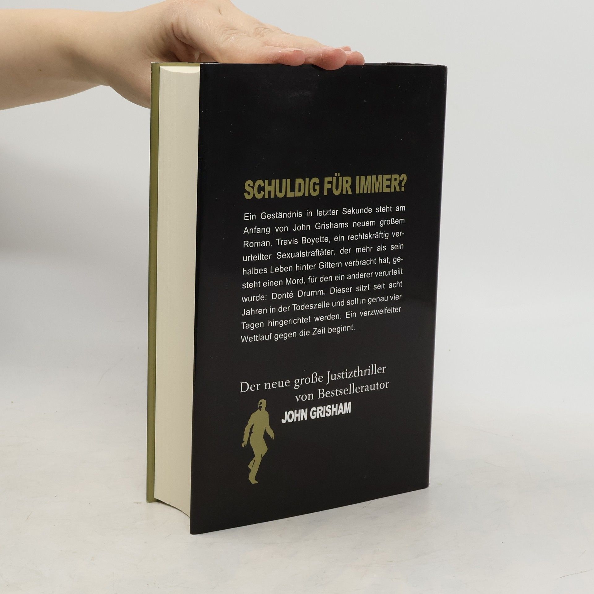 Schuldig für immer? Ein Geständnis in letzter Sekunde steht am Anfang von John Grishams neuem großem Roman. Travis Boyette, ein rechtskräftig verurteilter Sexualstraftäter, der mehr als sein halbes Leben hinter Gittern verbracht hat, gesteht einen Mord, für den ein anderer verurteilt wurde: Donté Drumm. Dieser sitzt seit acht Jahren in der Todeszelle und soll in genau vier Tagen hingerichtet werden. Ein verzweifelter Wettlauf gegen die Zeit beginnt. Als der gebrechlich wirkende Mann in seinem Büro auftaucht, kann Reverend Keith Schroeder nicht ahnen, dass diese Begegnung sein Leben für immer verändern wird. Der Mann, der sich als Travis Boyette vorstellt, bittet um ein Gespräch. Er sei sterbenskrank und wolle vor seinem Tod sein Gewissen erleichtern. Schroeder erkennt schnell, dass es dem Mann um mehr geht als um bloße Seelsorge. Doch als Boyette weiterspricht, verschlägt es dem Reverend die Sprache. In allen Einzelheiten gesteht Boyette eine Tat, für die er nie belangt wurde: die Vergewaltigung und den Mord an der siebzehnjährigen Nicole Yarber. Das Mädchen war vor Jahren verschwunden, ihr Leichnam wurde nie gefunden. Trotzdem kam es zu einer Verurteilung. Ein damaliger Mitschüler Nicoles, der Afroamerikaner Donté Drumm, wurde kurz nach seiner Verhaftung für schuldig befunden und zum Tode verurteilt. In vier Tagen soll Donté Drumm hingerichtet werden. Reverend Keith Schroeder steht vor der Herausforderung seines Lebens.