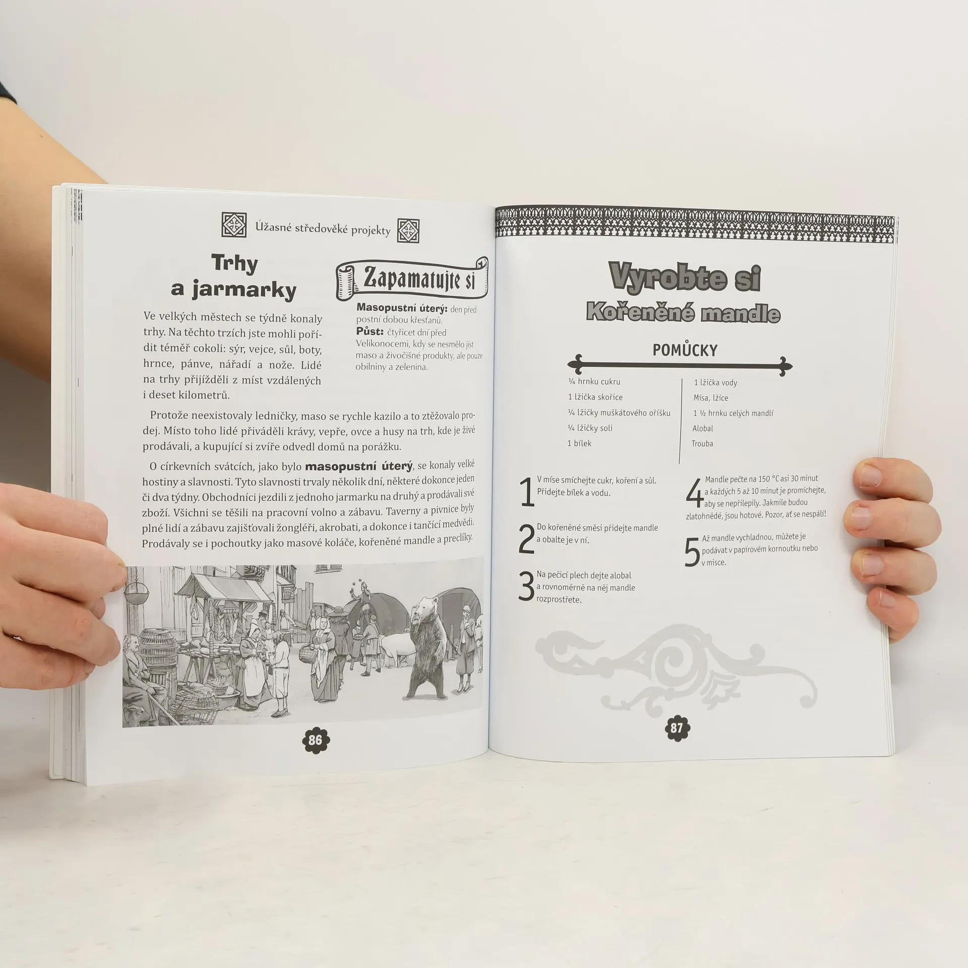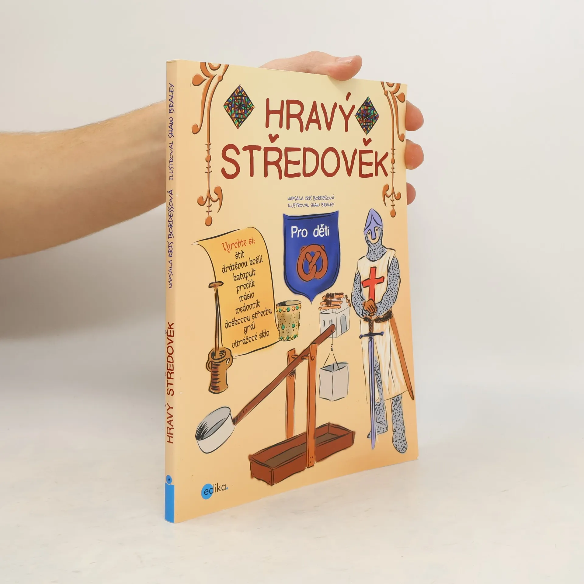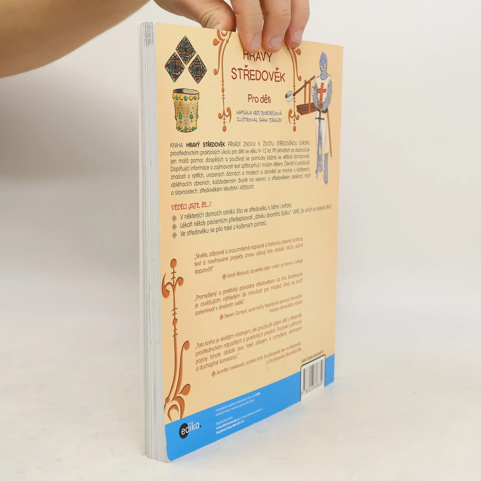 Kniha Hravý středověk přivádí znovu k životu středověkou Evropu prostřednictvím praktických úkolů pro děti ve věku 9–12 let. Při aktivitách se doporučuje jen malá pomoc dospělých a používají se pomůcky běžné ve většině domácností. Doplňující informace a zajímavosti text zpřístupňují i malým dětem. Čtenáři si prohloubí znalosti o rytířích, urozených dámách a hradech a dozvědí se mnohé o klášterech, obléhacích zbraních, každodenním životě na vesnici, o středověkém oblékání, trzích a slavnostech, středověkém lékařství i křižácích. VĚDĚLI JSTE, ŽE…? - V některých domcích rolníků žila ve středověku s lidmi i zvířata. - Lékaři někdy pacientům předepisovali „dávku dvorního šaška“. Věřili, že smích je nejlepší lékař. - Ve středověku se pilo také z kožených pohárů.