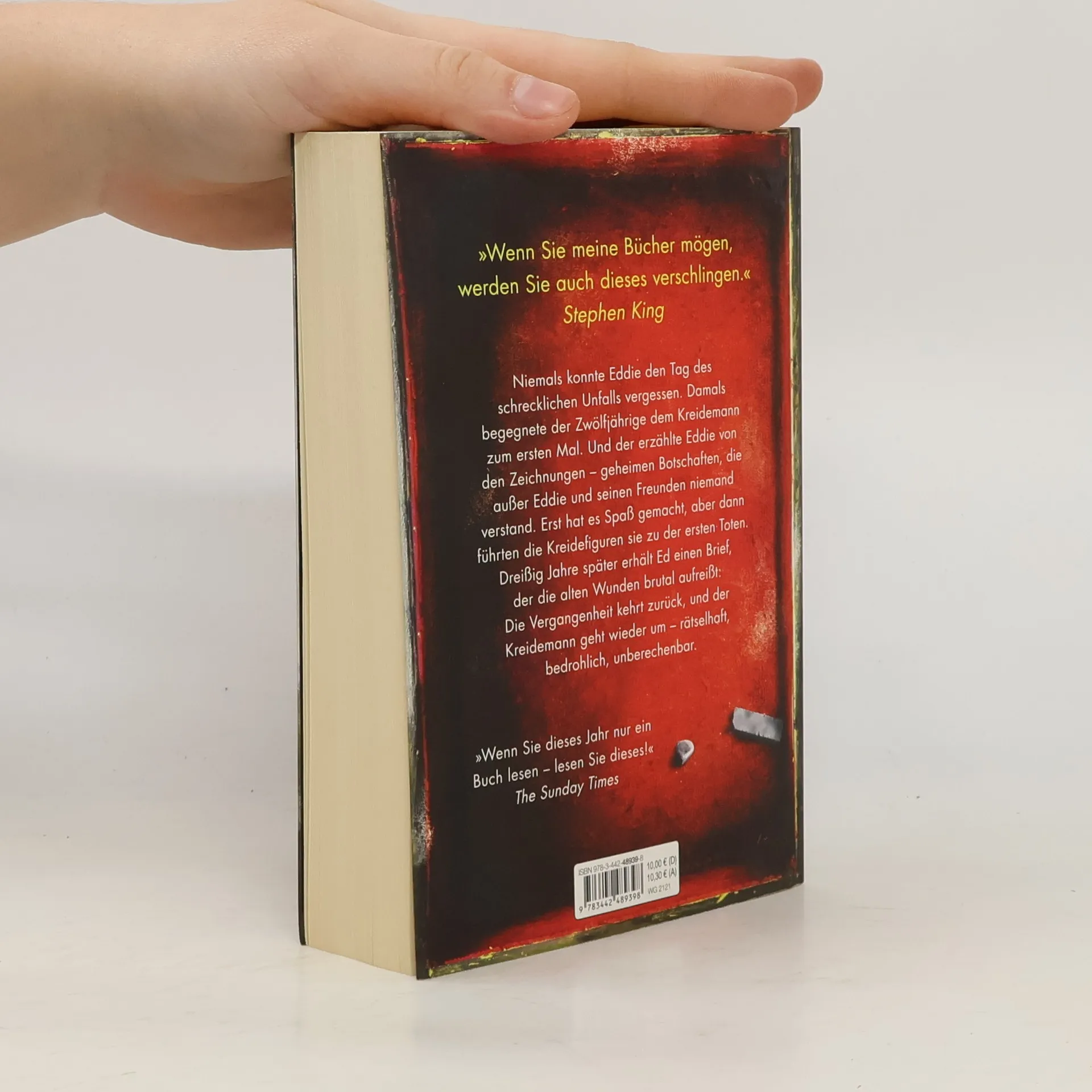 Niemals konnte Eddie den Tag des schrecklichen Unfalls vergessen. Damals begegnete der Zwölfjährige dem Kreidemann zum ersten Mal. Und der erzählte Eddie von den Zeichnungen – geheimen Botschaften, die außer Eddie und seinen Freunden niemand verstand. Erst hat es Spaß gemacht, aber dann führten die Kreidefiguren sie zu der ersten Toten. Dreißig Jahre später erhält Ed einen Brief, der die alten Wunden brutal aufreißt: Die Vergangenheit kehrt zurück, und der Kreidemann geht wieder um – rätselhaft, bedrohlich, unberechenbar.