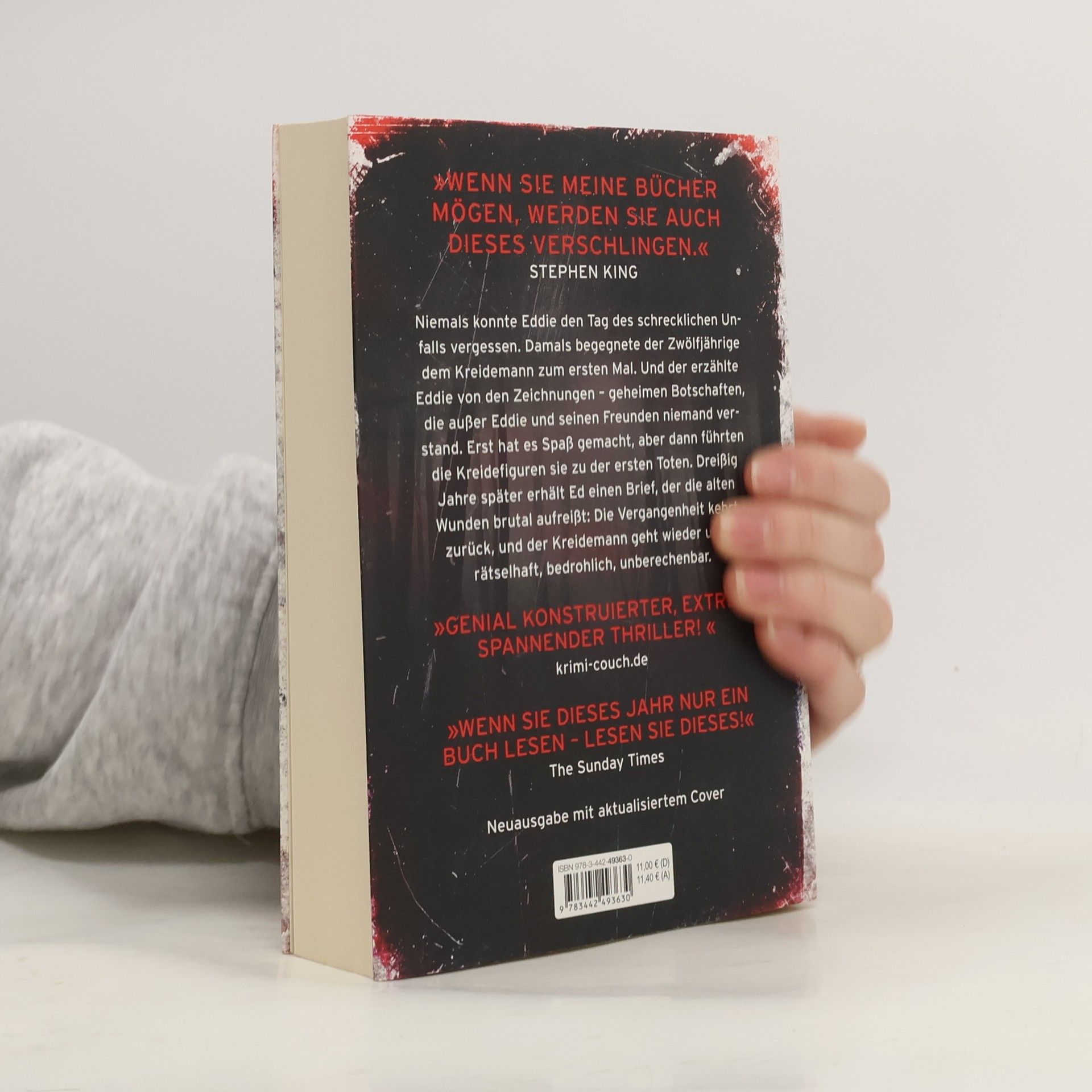 Niemals konnte Eddie den Tag des schrecklichen Unfalls vergessen. Damals begegnete der Zwölfjährige dem Kreidemann zum ersten Mal. Und der erzählte Eddie von den Zeichnungen – geheimen Botschaften, die außer Eddie und seinen Freunden niemand verstand. Erst hat es Spaß gemacht, aber dann führten die Kreidefiguren sie zu der ersten Toten. Dreißig Jahre später erhält Ed einen Brief, der die alten Wunden brutal aufreißt: Die Vergangenheit kehrt zurück, und der Kreidemann geht wieder um – rätselhaft, bedrohlich, unberechenbar.