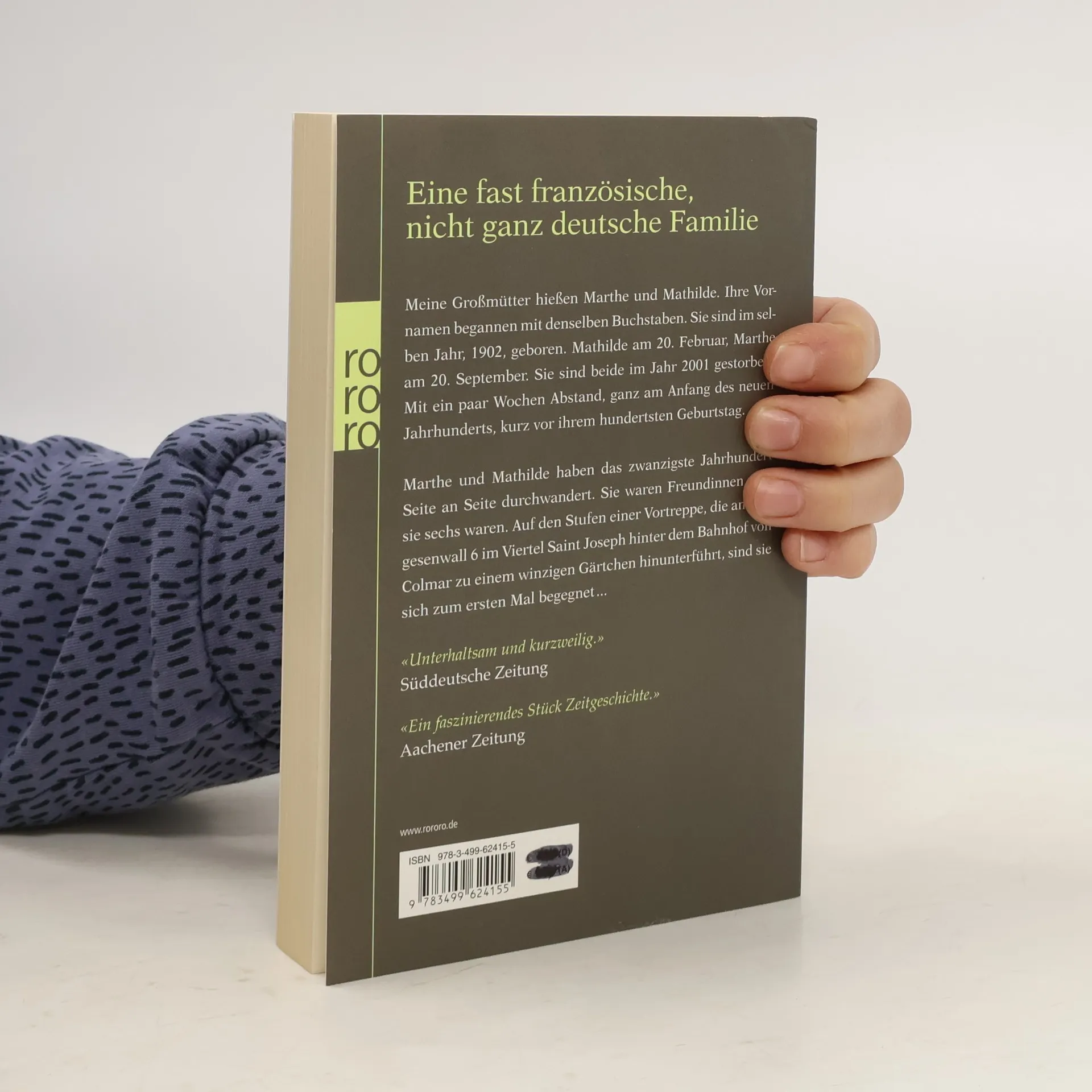 Eine fast französische, nicht ganz deutsche Familie.Meine Großmütter hießen Marthe und Mathilde. Ihre Vornamen begannen mit denselben Buchstaben. Sie sind im selben Jahr, 1902, geboren. Mathilde am 20. Februar, Marthe am 20. September. Sie sind beide im Jahr 2001 gestorben. Mit ein paar Wochen Abstand, ganz am Anfang des neuen Jahrhunderts, kurz vor ihrem hundertsten Geburtstag. Marthe und Mathilde haben das zwanzigste Jahrhundert Seite an Seite durchwandert. Sie waren Freundinnen, seit sie sechs waren. Auf den Stufen der Vortreppe, die am Vogesenwall 6 im Viertel Saint Joseph hinter dem Bahnhof von Colmar zu einem winzigen Gärtchen hinunterführt, sind sie sich zum ersten Mal begegnet...