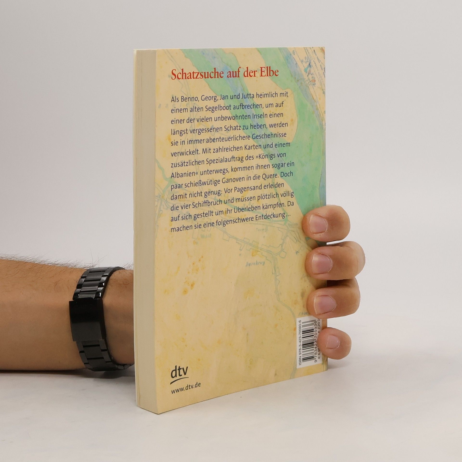 Schatzsuche auf der Elbe! Als Benno, Georg, Jan und Jutta heimlich mit einem alten Segelboot aufbrechen, um auf einer der vielen unbewohnten Inseln einen längst vergessenen Schatz zu heben, werden sie in immer abenteuerlichere Geschehnisse verwickelt. Mit zahlreichen Karten und einem zusätzlichen Spezialauftrag des ›Königs von Albanien‹ unterwegs, kommen ihnen sogar ein paar schießwütige Ganoven in die Quere. Doch damit nicht genug: Vor Pagensand erleiden die Vier Schiffbruch und müssen plötzlich völlig auf sich gestellt um ihr Überleben kämpfen. Da machen sie eine folgenschwere Entdeckung...