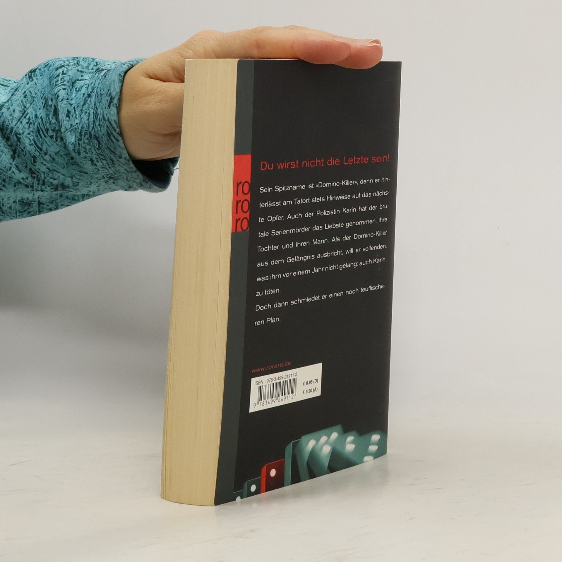 Du wirst nicht die Letzte sein! Sein Spitzname ist «Domino-Killer», denn er hinterlässt am Tatort stets Hinweise auf das nächste Opfer. Auch der Polizistin Karin hat der brutale Serienmörder das Liebste genommen, ihre Tochter und ihren Mann. Als der Domino-Killer aus dem Gefängnis ausbricht, will er vollenden, was ihm vor einem Jahr nicht gelang: auch Karin zu töten. Doch dann schmiedet er einen noch teuflischeren Plan.