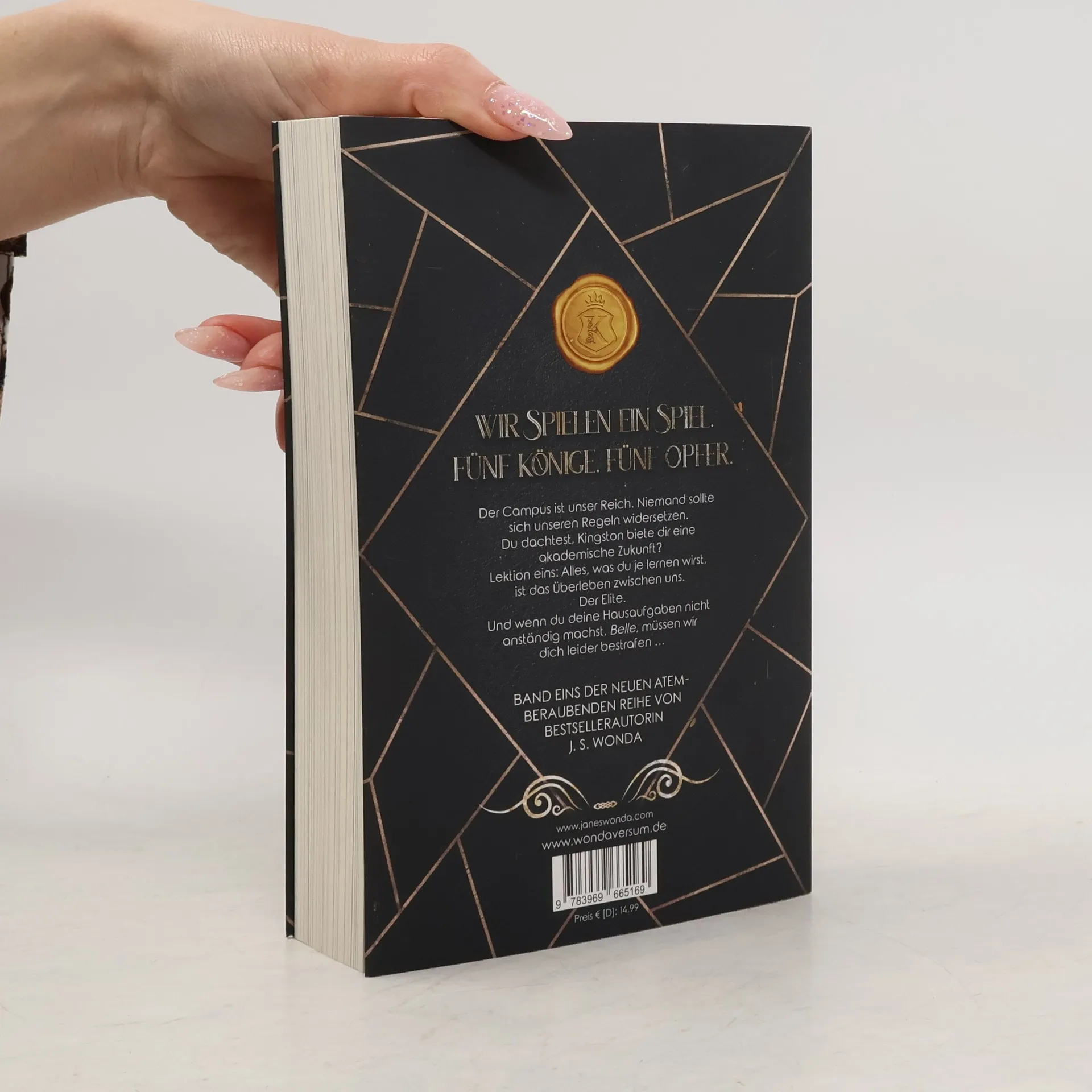 Wir spielen ein Spiel. Fünf Könige. Fünf Opfer. Der Campus ist unser Reich. Niemand sollte sich unseren Regeln widersetzen. Du dachtest, Kingston biete dir eine akademische Zukunft? Lektion eins: Alles, was du je lernen wirst, ist das Überleben zwischen uns. Der Elite. Und wenn du deine Hausaufgaben nicht anständig machst, Belle, müssen wir dich leider bestrafen … Mable ist eine von fünf Stipendiatinnen, die jedes Jahr an der Kingston University angenommen werden. Die reiche Elite des Colleges hält allerdings nichts vom Charity-Programm ihrer Eltern und will Mable mit aller Macht vertreiben. Allen voran die Kings. Fünf abtrünnige Seniorstudenten, die im Hintergrund ein unmoralisches Spiel veranstalten. Wird Mable gewinnen? Und wie soll sie sich dagegen wehren, dass drei der Kings plötzlich nur sie wollen? Wie weit wirst du gehen, um deinen Traum zu leben? Dark College. Bully Romance. Reverse Harem. Du willst nicht teilen. Sie schon. Band 1 einer neuen unabhängigen Reihe von Bestseller-Autorin J. S. Wonda Alle Folgebände handeln von denselben Hauptfiguren und erscheinen voraussichtlich mit Abstand von 4-7 Wochen | Bitte Vor- und Nachwort beachten | Enthält direkte Sprache und explizite Szenen
