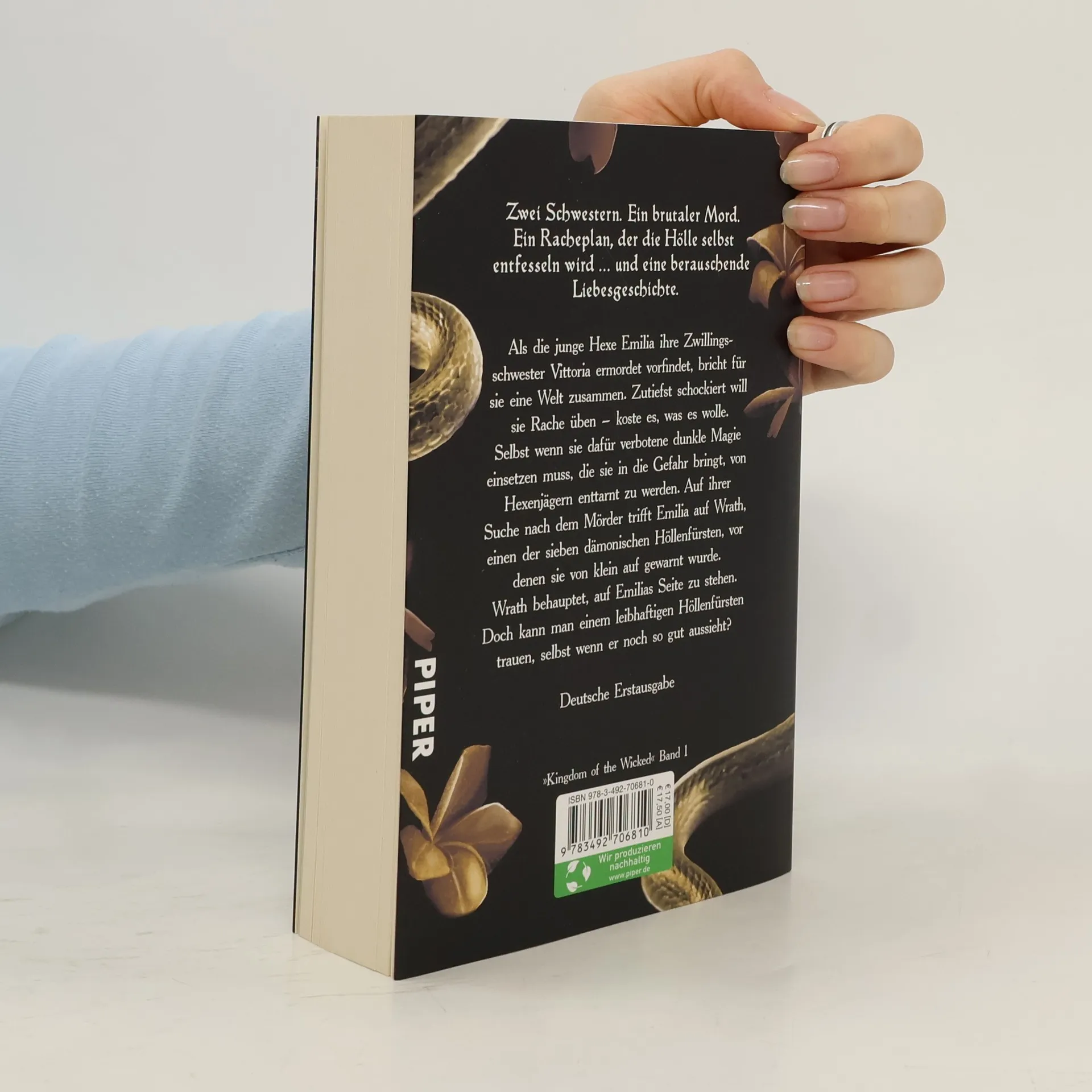 Zwei Schwestern. Ein brutaler Mord. Ein Racheplan, der die Hölle selbst entfesseln wird … und eine berauschende Liebesgeschichte. Als die junge Hexe Emilia ihre Zwillingsschwester Vittoria ermordet vorfindet, bricht für sie eine Welt zusammen. Zutiefst schockiert will sie Rache üben – koste es, was es wolle. Selbst wenn sie dafür verbotene dunkle Magie einsetzen muss, die sie in die Gefahr bringt, von Hexenjägern enttarnt zu werden. Auf ihrer Suche nach dem Mörder trifft Emilia auf Wrath, einen der sieben dämonischen Höllenfürsten, vor denen sie von klein auf gewarnt wurde. Wrath behauptet, auf Emilias Seite zu stehen. Doch kann man einem leibhaftigen Höllenfürsten trauen, selbst wenn er noch so gut aussieht? Der atemberaubende Auftakt der gefeierten »Kingdom of the Wicked«-Reihe - jetzt auf Deutsch! Band 1: Kingdom of the Wicked – Der Fürst des Zorns Band 2: Kingdom of the Wicked – Die Königin der Hölle Band 3: Kingdom of the Wicked – Die Göttin der Rache