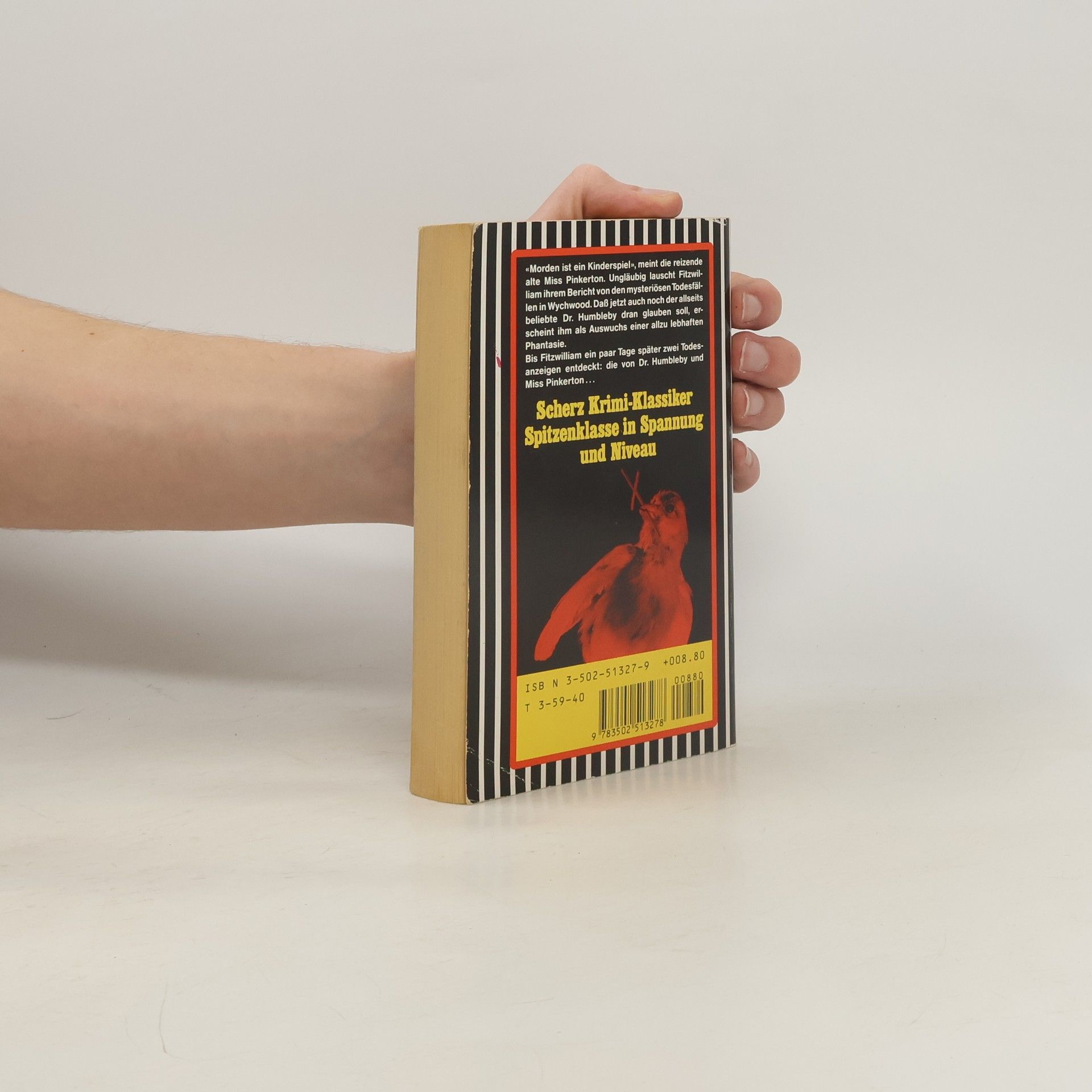 «Morden ist ein Kinderspiel», meint die reizende alte Miss Pinkerton. Ungläubig lauscht Fitzwilliam ihrem Bericht von den mysteriösen Todesfällen in Wychwood. Dass jetzt auch noch der allseits beliebte Dr. Humbleby dran glauben soll, erscheint ihm als Auswuchs einer allzu lebhaften Phantasie. Bis Fitzwilliam ein paar Tage später zwei Todesanzeigen entdeckt: die von Dr. Humbleby und Miss Pinkerton. -