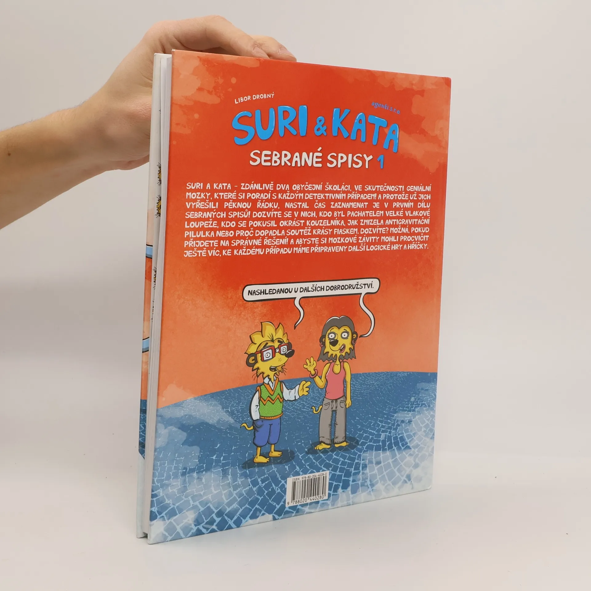 Suri a Kata – zdánlivě dva obyčejní školáci, ale ve skutečnosti geniální mozky se stoprocentní úspěšností v řešení i těch nejzapeklitějších detektivních příkladů! Ze své tajné podzemní základny vybavené tou nejmodernější technikou vyrážejí do terénu, aby zbavili svět zlodějů a podvodníků. A protože už vyřešili pěknou řádku zločinů, nastal čas vydat knižně první část jejich detektivních zážitků v komiksové podobě. V Sebraných spisech se dozvíte například, kdo byl pachatelem velké vlakové loupeže, kdo se pokusil okrást kouzelníka, jak zmizela antigravitační pilulka nebo proč dopadla soutěž krásy fiaskem. Dozvíte? Možná ano, pokud přijdete na správné řešení! A abyste si své mozkové závity mohli procvičit ještě víc, ke každému případu máme připraveny další logické hry a hříčky.