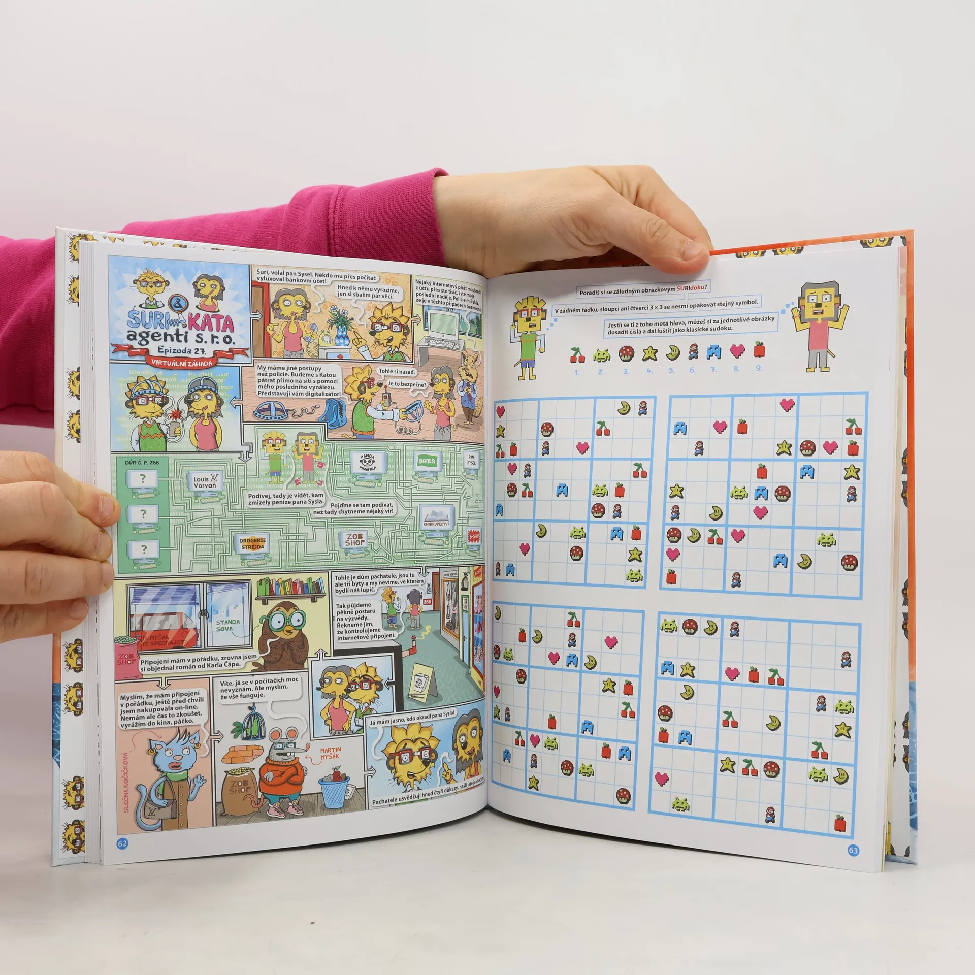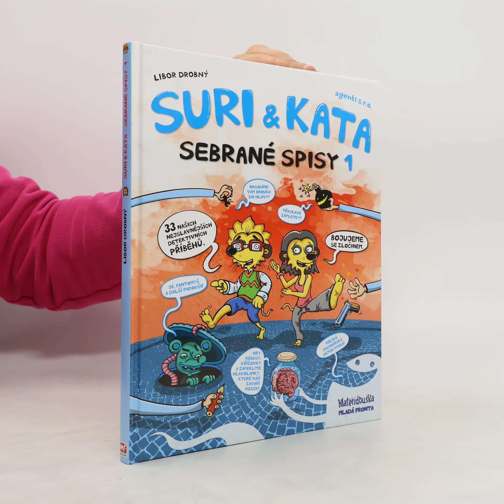 Suri a Kata – zdánlivě dva obyčejní školáci, ale ve skutečnosti geniální mozky se stoprocentní úspěšností v řešení i těch nejzapeklitějších detektivních příkladů! Ze své tajné podzemní základny vybavené tou nejmodernější technikou vyrážejí do terénu, aby zbavili svět zlodějů a podvodníků. A protože už vyřešili pěknou řádku zločinů, nastal čas vydat knižně první část jejich detektivních zážitků v komiksové podobě. V Sebraných spisech se dozvíte například, kdo byl pachatelem velké vlakové loupeže, kdo se pokusil okrást kouzelníka, jak zmizela antigravitační pilulka nebo proč dopadla soutěž krásy fiaskem. Dozvíte? Možná ano, pokud přijdete na správné řešení! A abyste si své mozkové závity mohli procvičit ještě víc, ke každému případu máme připraveny další logické hry a hříčky.