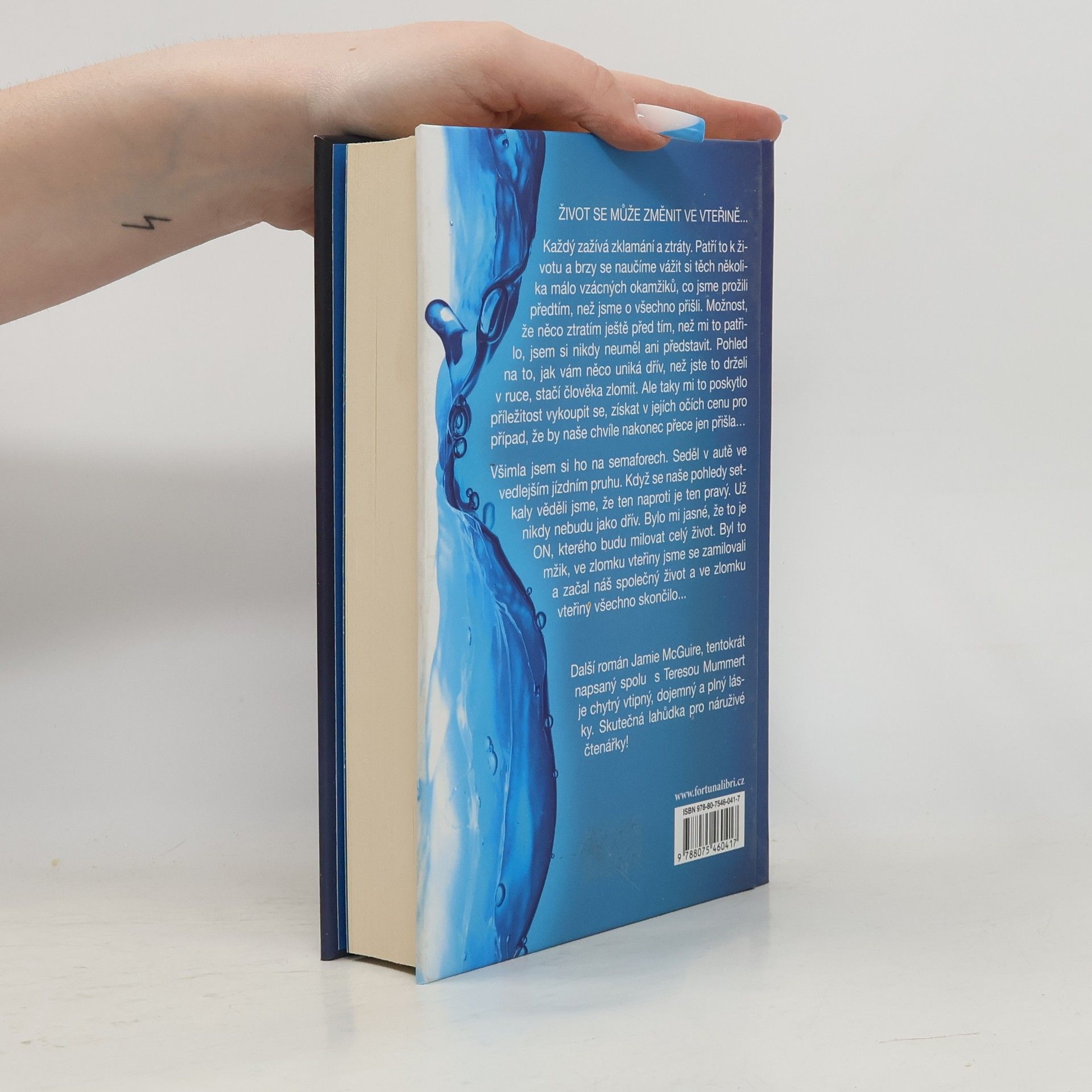 Život se může změnit ve vteřině ... Každý zažívá zklamání a ztráty. Patří to k životu a brzy se naučíme vážit si těch několika málo vzácných okamžiků, co jsme prožili předtím, než jsme o všechno přišli. Možnost, že něco ztratím ještě před tím, než mi to patřilo, jsem si nikdy neuměl ani představit. Pohled na to, jak vám něco uniká dřív, než jste to drželi v ruce, stačí člověka zlomit. Ale taky mi to poskytlo příležitost vykoupit se, získat v jejích očích cenu pro případ, že by naše chvíle nakonec přece jen přišla… Všimla jsem si ho na semaforech. Seděl v autě ve vedlejším jízdním pruhu. Když se naše pohledy setkaly, věděli jsme, že ten naproti je ten pravý. Už nikdy nebudu jako dřív. Bylo mi jasné, že to je ON, kterého budu milovat celý život. Byl to mžik, ve zlomku vteřiny jsme se zamilovali a začal náš společný život a ve zlomku vteřiny všechno skončilo ... Další román Jamie McGuire, tentokrát napsaný spolu s Teresou Mummert je chytrý vtipný, dojemný a plný lásky. Skutečná lahůdka pro náruživé čtenářky!
