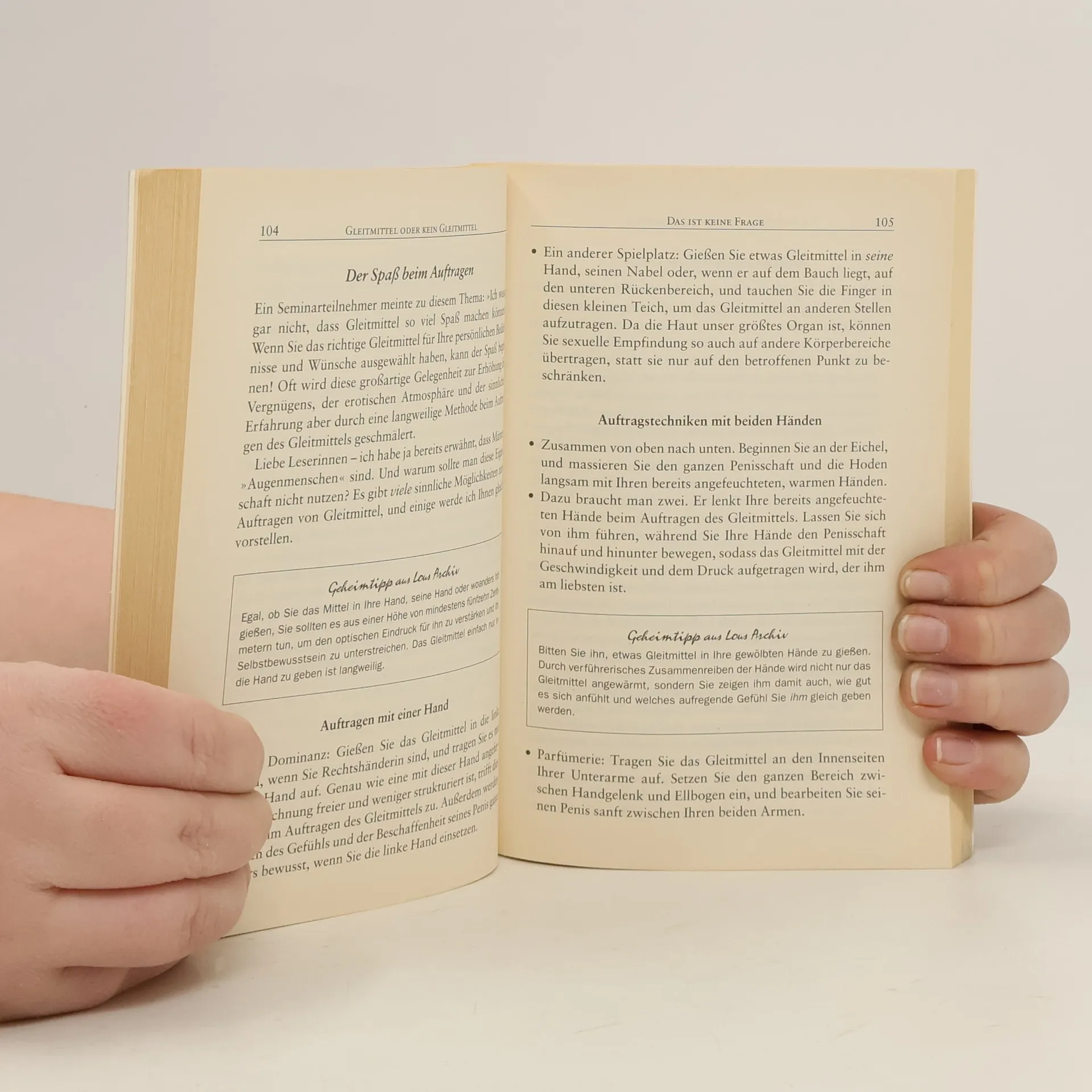 Vergnüglich bringt Lou Paget ihren Leserinnen Dinge bei, die »ihr« mehr Selbstbewusstsein in Sachen Sex geben – und von denen »er« garantiert nie genug bekommt: Zu Beginn stehen Tipps für eine erotische Atmosphäre und vielversprechende Kusstechniken im Mittelpunkt. Dass selbst das Benutzen von Kondomen absolut sexy sein kann, ist nur eine von zahlreichen Erfahrungen, die Lou Paget weitergibt. Oral- und Analsex, zwanzig aufregende Spiele mit den Händen und viele illustrierte Sex-Stellungen gehören zu den Künsten der perfekten Liebhaberin. Ein Buch, das schon beim Lesen Lust auf mehr macht.