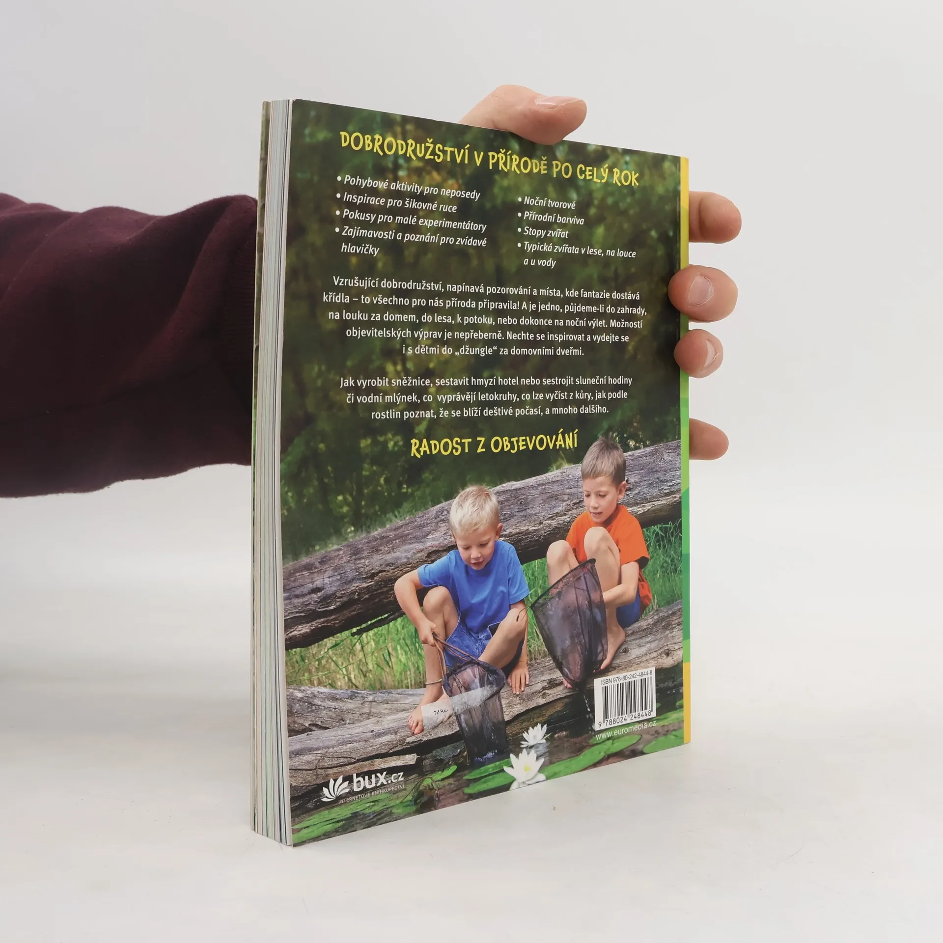 Samostatně zkoumat přírodu a pozorovat zvířata a rostliny v jejich přirozeném prostředí – to jsou zkušenosti, které jsou pro děti a mládež důležité a představují vítanou protiváhou k životu v dnešním přetechnizovaném světě. Vydejte se tedy s dětmi do přírody a vytvořte “větrnou” zvonkohru, uspořádejte soutěž v hodu šiškou, vyzkoušejte si otisky kůry, postavte hráz, vyrobte sněžnice nebo luk a šípy, prostě tvořte, vyřezávejte, poznávejte a bavte se. Tento hravý průvodce přináší celou řadu nápaditých aktivit, které vám pomohou nalákat děti do přírody a strávit s nimi jedinečný den poznáváním zvířat a rostlin za každého počasí.