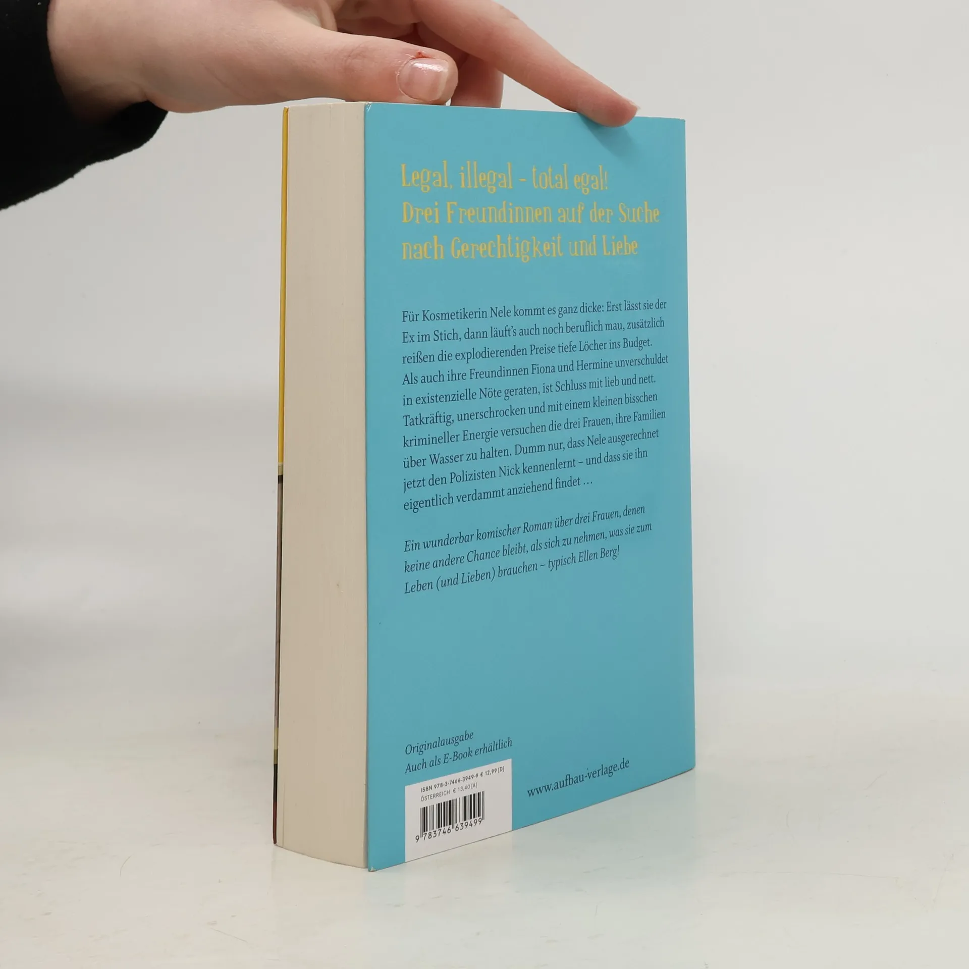 Legal, illegal – total egal! Drei Freundinnen auf der Suche nach Gerechtigkeit und Liebe Für Kosmetikerin Nele kommt es ganz dicke: Erst lässt sie der Ex im Stich, dann läuft’s auch noch beruflich mau, zusätzlich reißen die explodierenden Preise tiefe Löcher ins Budget. Als auch ihre Freundinnen Fiona und Hermine unverschuldet in existenzielle Nöte geraten, ist Schluss mit lieb und nett. Tatkräftig, unerschrocken und mit einem kleinen bisschen krimineller Energie versuchen die drei Frauen, ihre Familien über Wasser zu halten. Dumm nur, dass Nele ausgerechnet jetzt den Polizisten Nick kennenlernt – und dass sie ihn eigentlich verdammt anziehend findet … Ein wunderbar komischer Roman über drei Frauen, denen keine andere Chance bleibt, als sich zu nehmen, was sie zum Leben (und Lieben) brauchen – typisch Ellen Berg!
