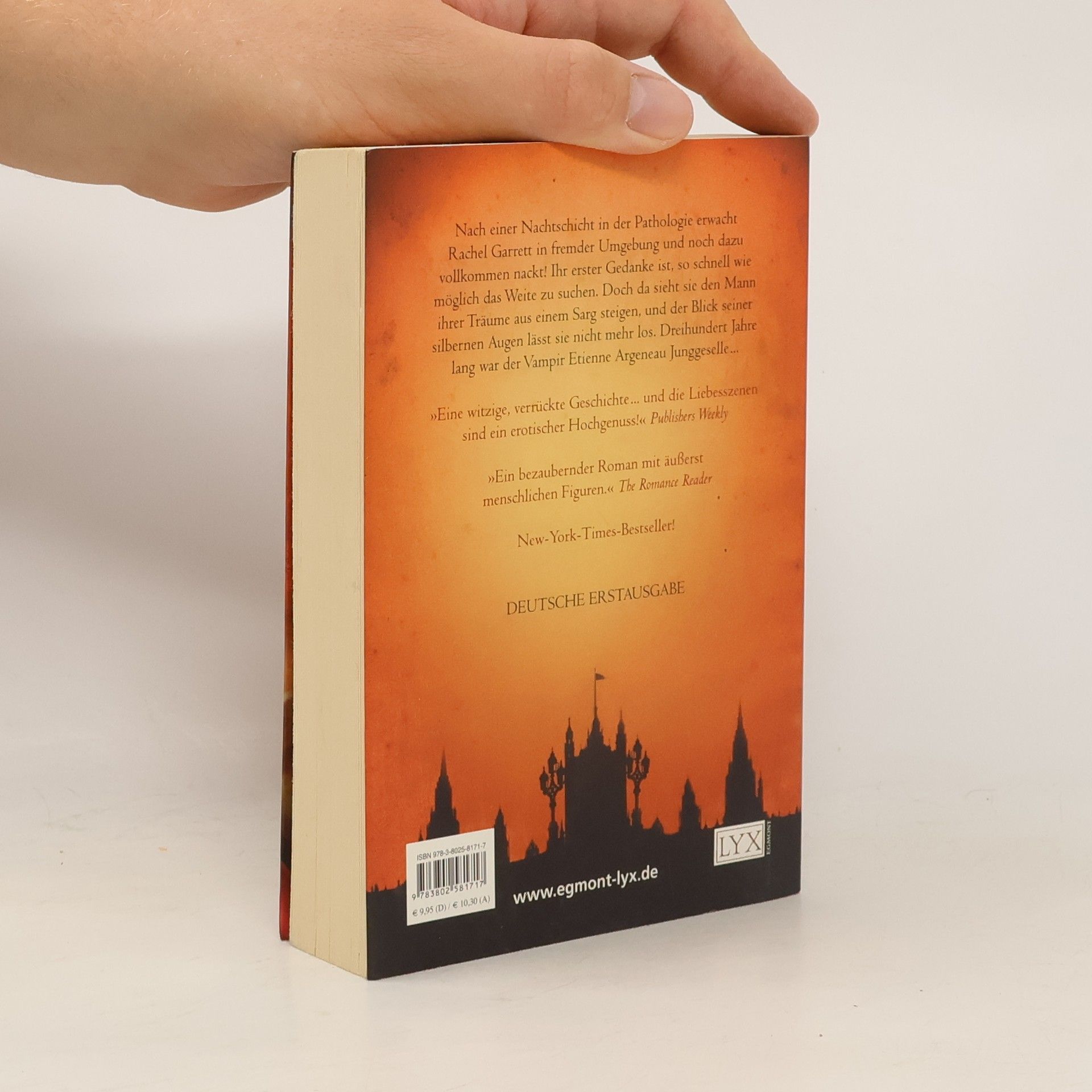 Nach einer Nachtschicht im Leichenschauhaus erwacht Rachel Garrett zu ihrer Überraschung in fremder Umgebung und noch dazu vollkommen nackt! Ihr erster Gedanke ist, so schnell wie möglich das Weite zu suchen. Doch dann sieht sie den Mann ihrer Träume aus einem Sarg steigen, und der Blick in seinen silbernen Augen geht ihr sofort unter die Haut. Dreihundert Jahre lang ist der Vampir Etienne Argeneau Junggeselle gewesen. Die Entscheidung, die hübsche Rachel in eine Vampirin zu verwandeln, wird sein Leben verändern - auf immer und ewig!