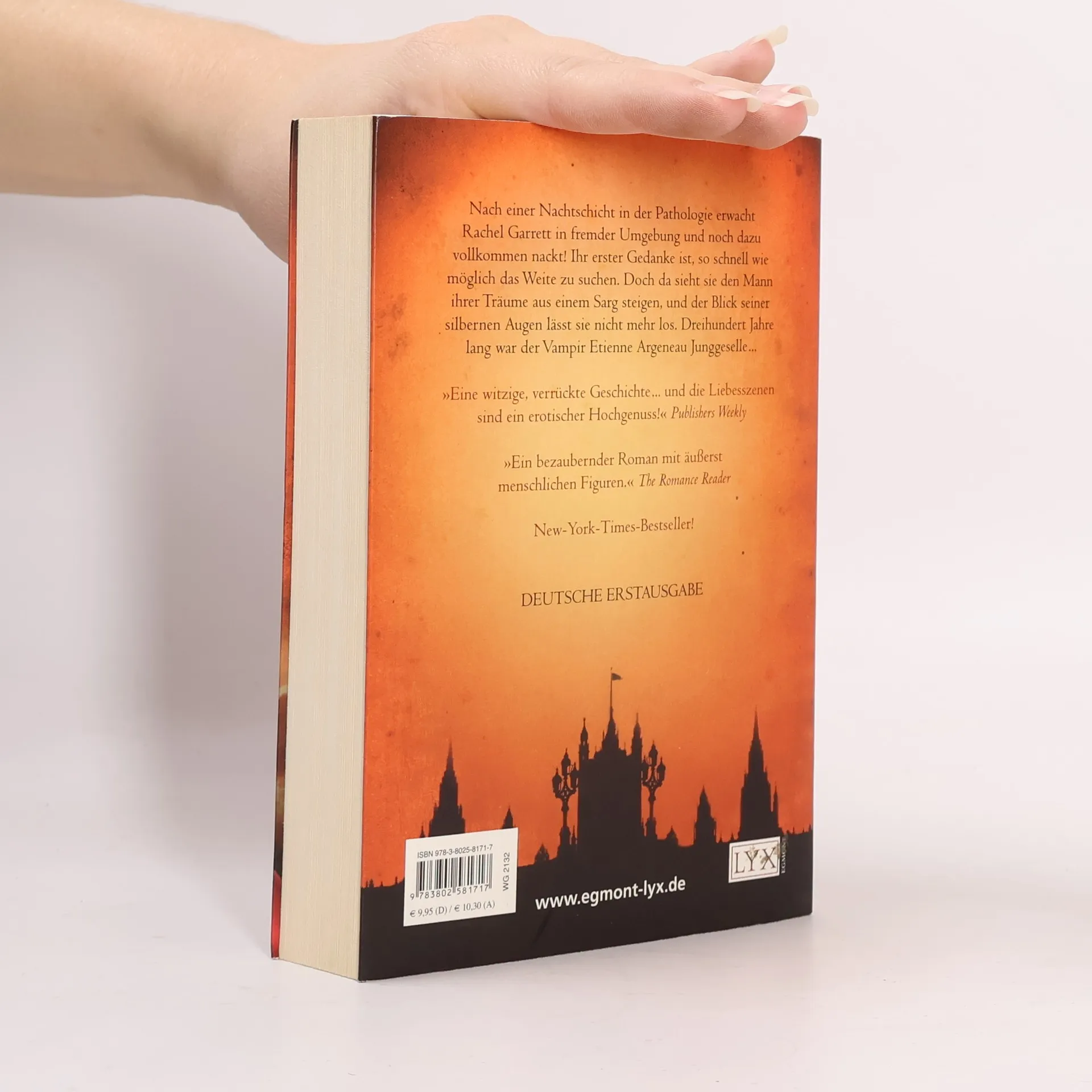 Nach einer Nachtschicht im Leichenschauhaus erwacht Rachel Garrett zu ihrer Überraschung in fremder Umgebung und noch dazu vollkommen nackt! Ihr erster Gedanke ist, so schnell wie möglich das Weite zu suchen. Doch dann sieht sie den Mann ihrer Träume aus einem Sarg steigen, und der Blick in seinen silbernen Augen geht ihr sofort unter die Haut. Dreihundert Jahre lang ist der Vampir Etienne Argeneau Junggeselle gewesen. Die Entscheidung, die hübsche Rachel in eine Vampirin zu verwandeln, wird sein Leben verändern - auf immer und ewig!