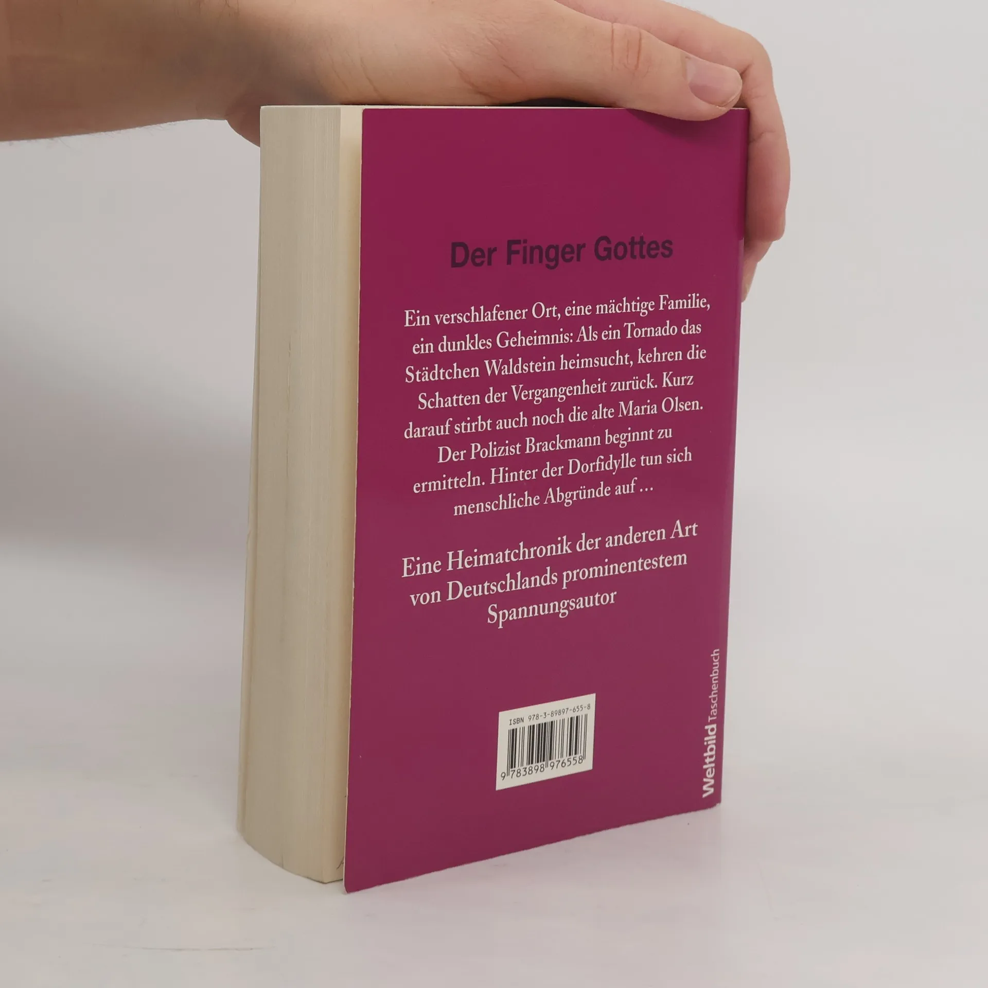 Deutscher Autor (1954-2011). - Ein verschlafener Ort, eine mächtige Familie, ein dunkles Geheimnis: Als ein Tornado das Städtchen Waldstein heimsucht, kehren die Schatten der Vergangenheit zurück. Kurz darauf stirbt auch noch die alte Maria Olsen. Der Polizist Brackmann beginnt zu ermitteln. Hinter der Dorfidylle tun sich menschliche Abgründe auf..