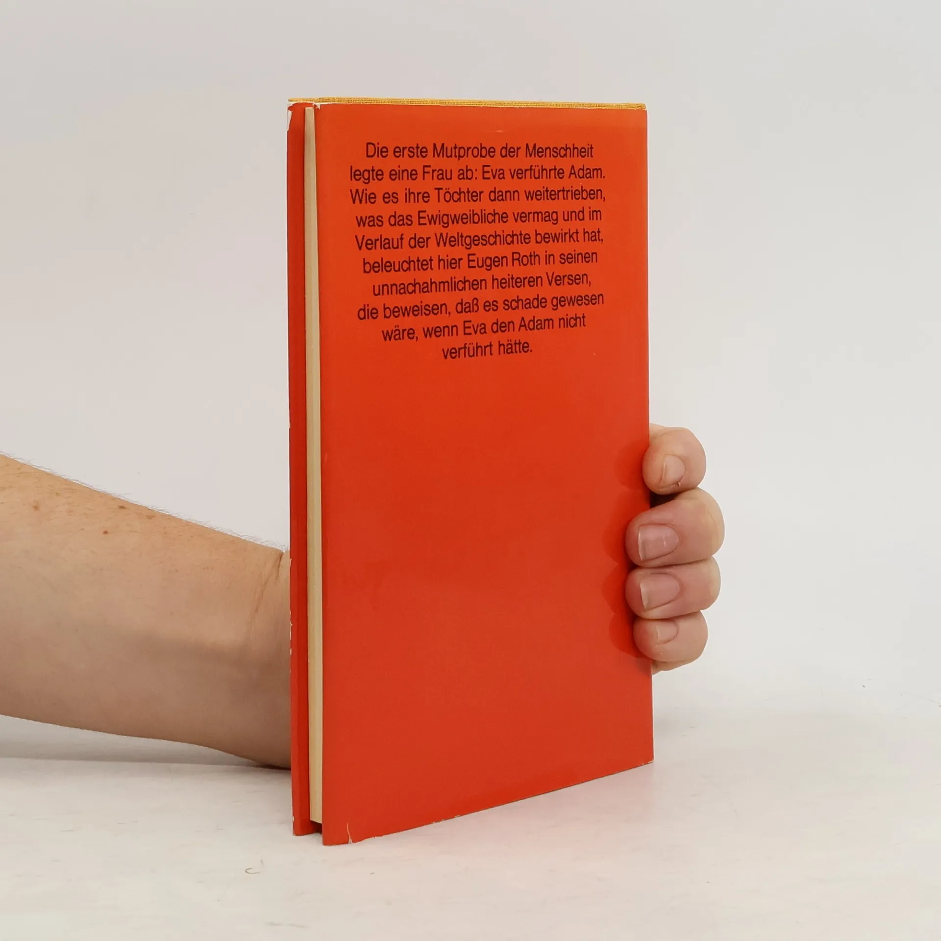 Die erste Mutprobe der Menschheit legte eine Frau ab: Eva verführte Adam. Wie es ihre Töchter dann weitertrieben, was das Ewigweibliche vermag und im Verlauf der Weltgeschichte bewirkt hat, beleuchtet hier Eugen Roth in seinen unnachahmlichen heiteren Versen, die beweisen, daß es schade gewesen wäre, wenn Eva den Adam nicht verführt hätte.