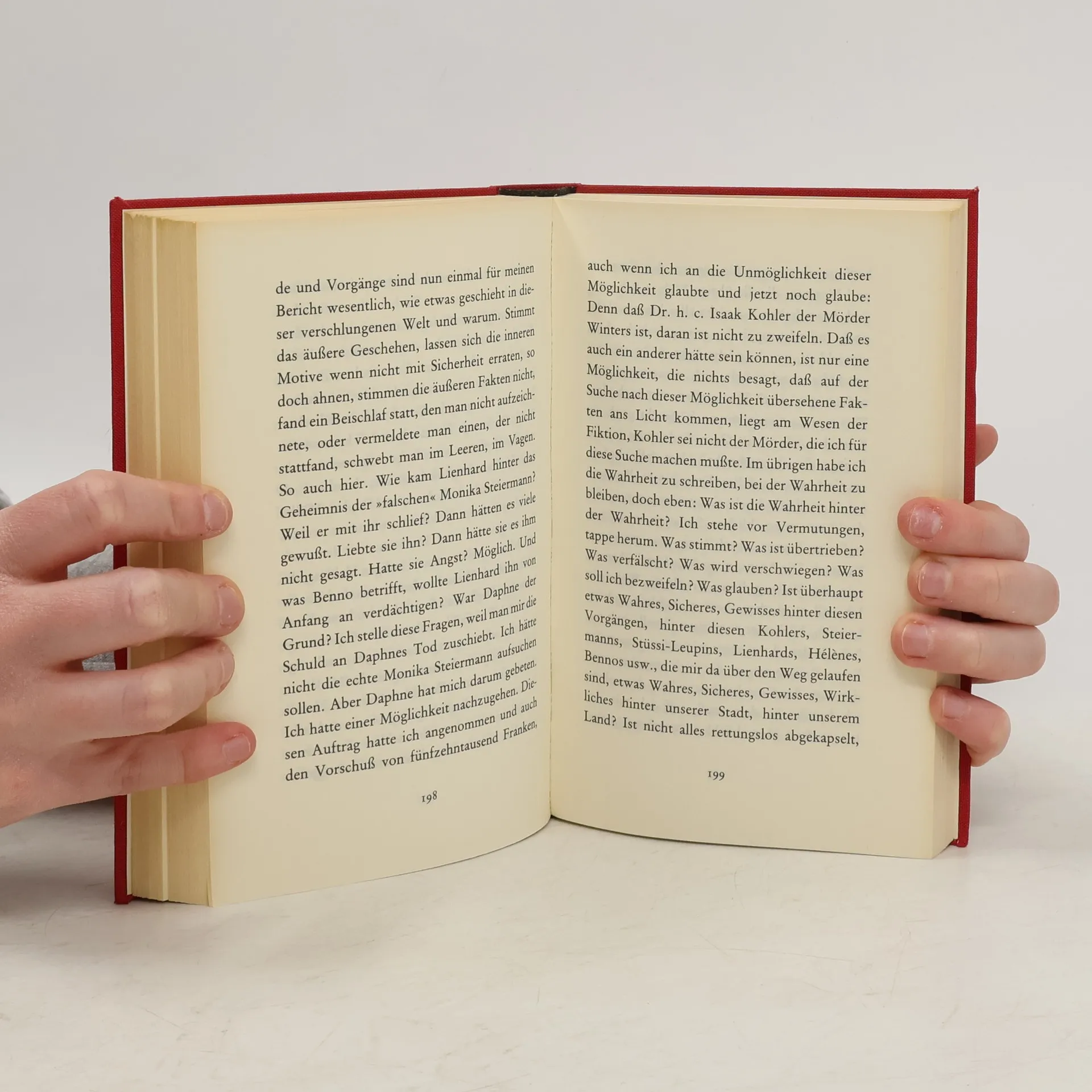 Ein Zürcher Kantonsrat erschießt in einem überfüllten, von Politikern, Wirtschaftskoryphäen und Künstlern besuchten Restaurant der Stadt vor aller Augen einen Germanisten, Professor an der Universität, läßt, zu zwanzig Jahren Zuchthaus verurteilt, im Gefängnis einen jungen, mittellosen Rechtsanwalt zu sich kommen und erteilt diesem den Auftrag, seinen Fall unter der Annahme neu zu untersuchen, er sei nicht der Mörder gewesen. Der junge Anwalt, der den scheinbar sinnlosen Auftrag annimmt, erkennt zu spät, in welche Falle ihn die Justiz geraten läßt, weil er sie mit der Gerechtigkeit verwechselt.