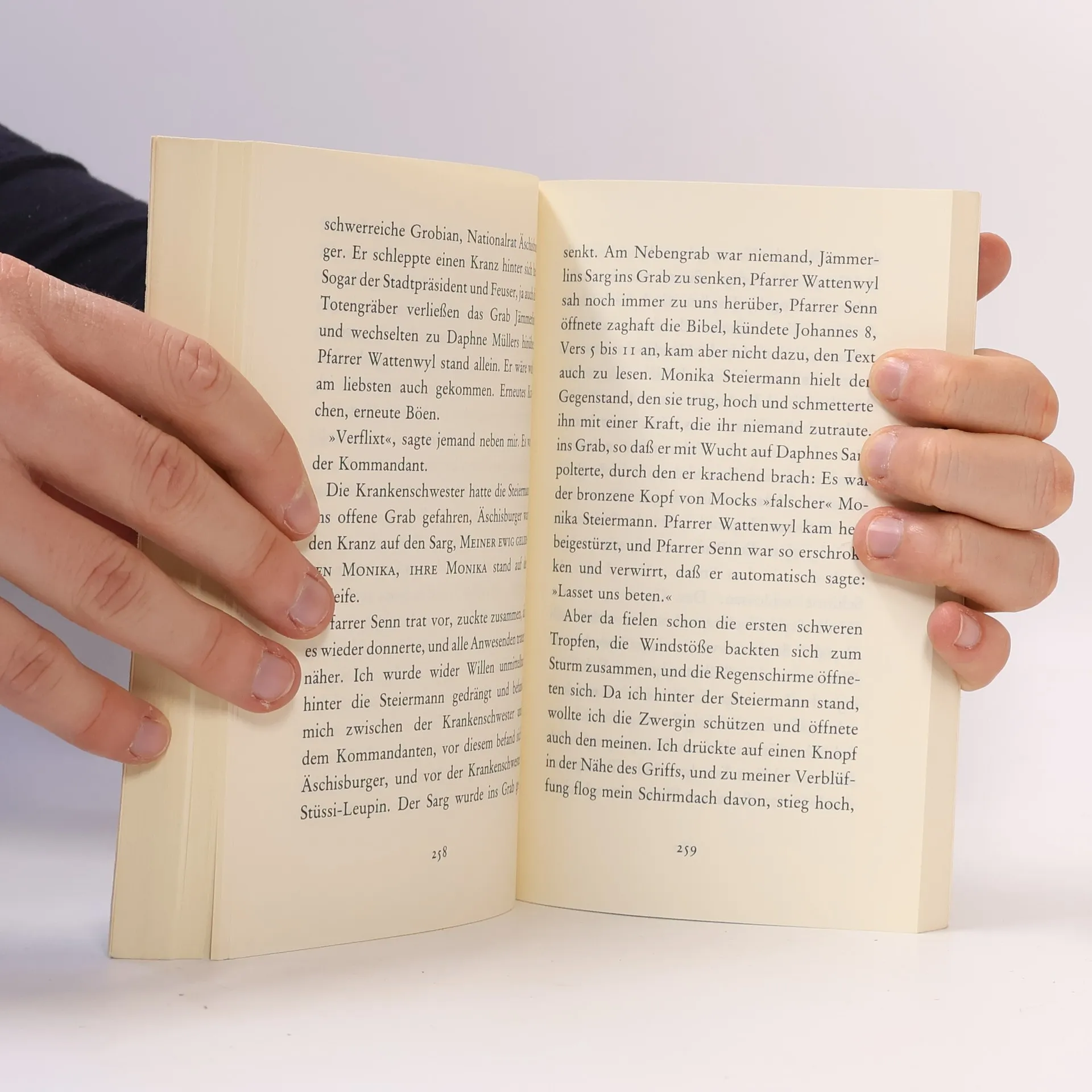 Ein Zürcher Kantonsrat erschießt in einem überfüllten, von Politikern, Wirtschaftskoryphäen und Künstlern besuchten Restaurant der Stadt vor aller Augen einen Germanisten, Professor an der Universität, läßt, zu zwanzig Jahren Zuchthaus verurteilt, im Gefängnis einen jungen, mittellosen Rechtsanwalt zu sich kommen und erteilt diesem den Auftrag, seinen Fall unter der Annahme neu zu untersuchen, er sei nicht der Mörder gewesen. Der junge Anwalt, der den scheinbar sinnlosen Auftrag annimmt, erkennt zu spät, in welche Falle ihn die Justiz geraten läßt, weil er sie mit der Gerechtigkeit verwechselt.