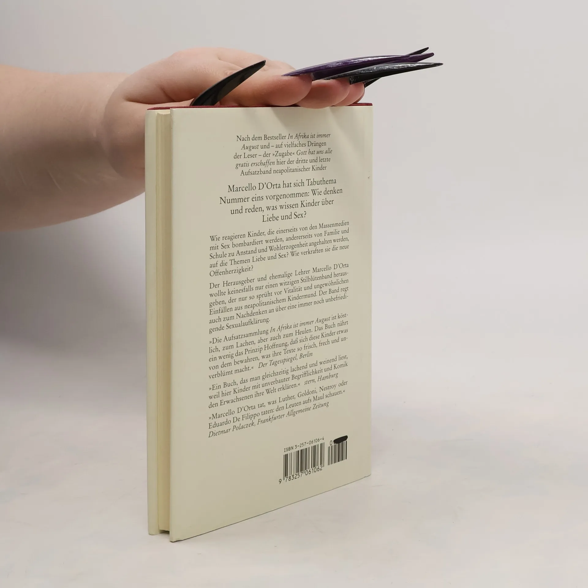 Wie reagieren Kinder, die einerseits von den Massenmedien mit Sex bombardiert werden, andererseits von Familie und Schule zu Anstand und Wohlerzogenheit angehalten werden, auf die Themen Liebe und Sex? Wie verkraften sie die neue Offenherzigkeit?§Der Herausgeber und ehemalige Lehrer Marcello D'Orta wollte keinesfalls nur einen witzigen Stilblütenband herausgeben, der nur so sprüht vor Vitalität und ungewöhnlichen Einfällen aus neapolitanischem Kindermund. Der Band regt auch zum Nachdenken an über eine immer noch unbefriedigende Sexualaufklärung.