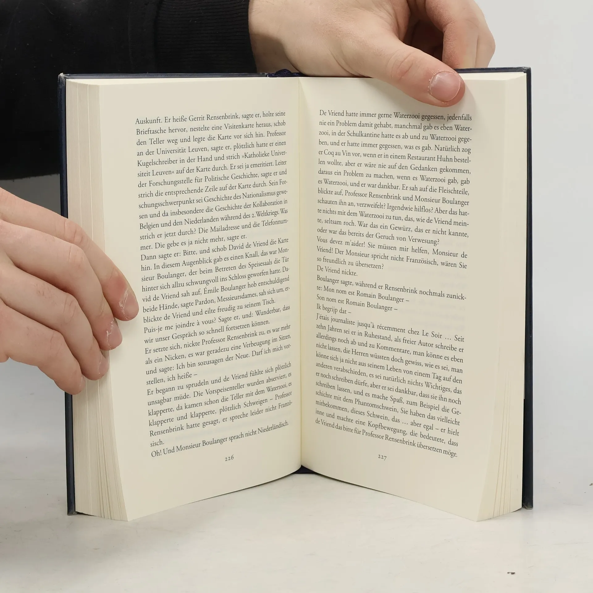 In Brüssel laufen die Fäden zusammen – und ein Schwein durch die Straßen. Fenia Xenopoulou, Beamtin in der Generaldirektion Kultur der Europäischen Kommission, steht vor der Herausforderung, das Image der Kommission zu verbessern. Sie beauftragt Martin Susman, eine kreative Idee zu entwickeln, die schließlich die Form eines historischen Gespensts annimmt und Unruhe in den EU-Institutionen stiftet. David de Vriend, der in einem Altenheim gegenüber dem Brüsseler Friedhof lebt, erinnert sich an seine Kindheit, als er von einem Deportationszug sprang, der seine Eltern ins Verderben führte. Nun steht er vor der Herausforderung, das, was er zu vergessen droht, zu bezeugen. Auch Kommissar Brunfaut hat es nicht leicht; aus politischen Gründen muss er einen Mordfall ruhen lassen, da die Akten unauffindbar sind. Alois Erhart, emeritierter Volkswirt, soll in einem Think-Tank der Kommission vor den Denkbeauftragten aller Länder sprechen, was seine letzten Worte sein könnten. Robert Menasse spannt in seinem neuen Roman einen Bogen zwischen Zeiten, Nationen, Bürokratie und großen Gefühlen. Inmitten dieser Ereignisse sucht Brüssel einen Namen für das durch die Straßen laufende Schwein, während David de Vriend ein Begräbnis erhält, das stillschweigend das Ende einer ganzen Epoche markiert: der Epoche der Scham.