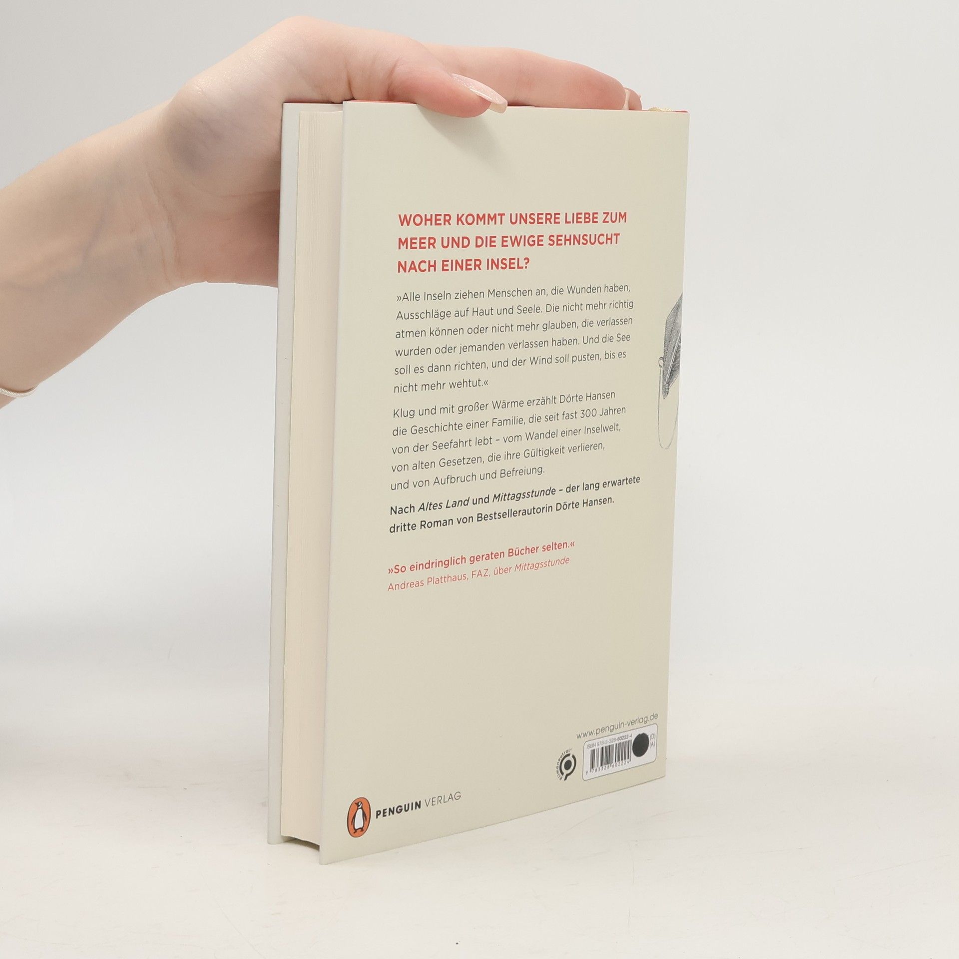 Der dritte Roman von Bestsellerautorin Dörte Hansen. Woher kommt unsere Liebe zum Meer und die ewige Sehnsucht nach einer Insel? Die Fähre braucht vom Festland eine Stunde auf die kleine Nordseeinsel, manchmal länger, je nach Wellengang. Hier lebt in einem der zwei Dörfer seit fast 300 Jahren die Familie Sander. Drei Kinder hat Hanne großgezogen, ihr Mann hat die Familie und die Seefahrt aufgegeben. Nun hat ihr Ältester sein Kapitänspatent verloren, ist gequält von Ahnungen und Flutstatistiken und wartet auf den schwersten aller Stürme. Tochter Eske, die im Seniorenheim Seeleute und Witwen pflegt, fürchtet die Touristenströme mehr als das Wasser, weil mit ihnen die Inselkultur längst zur Folklore verkommt. Nur Henrik, der Jüngste, ist mit sich im Reinen. Er ist der erste Mann in der Familie, den es nie auf ein Schiff gezogen hat, nur immer an den Strand, wo er Treibgut sammelt. Im Laufe eines Jahres verändert sich das Leben der Familie Sander von Grund auf, erst kaum spürbar, dann mit voller Wucht.Klug und mit großer Wärme erzählt Dörte Hansen vom Wandel einer Inselwelt, von alten Gesetzen, die ihre Gültigkeit verlieren, und von Aufbruch und Befreiung.
