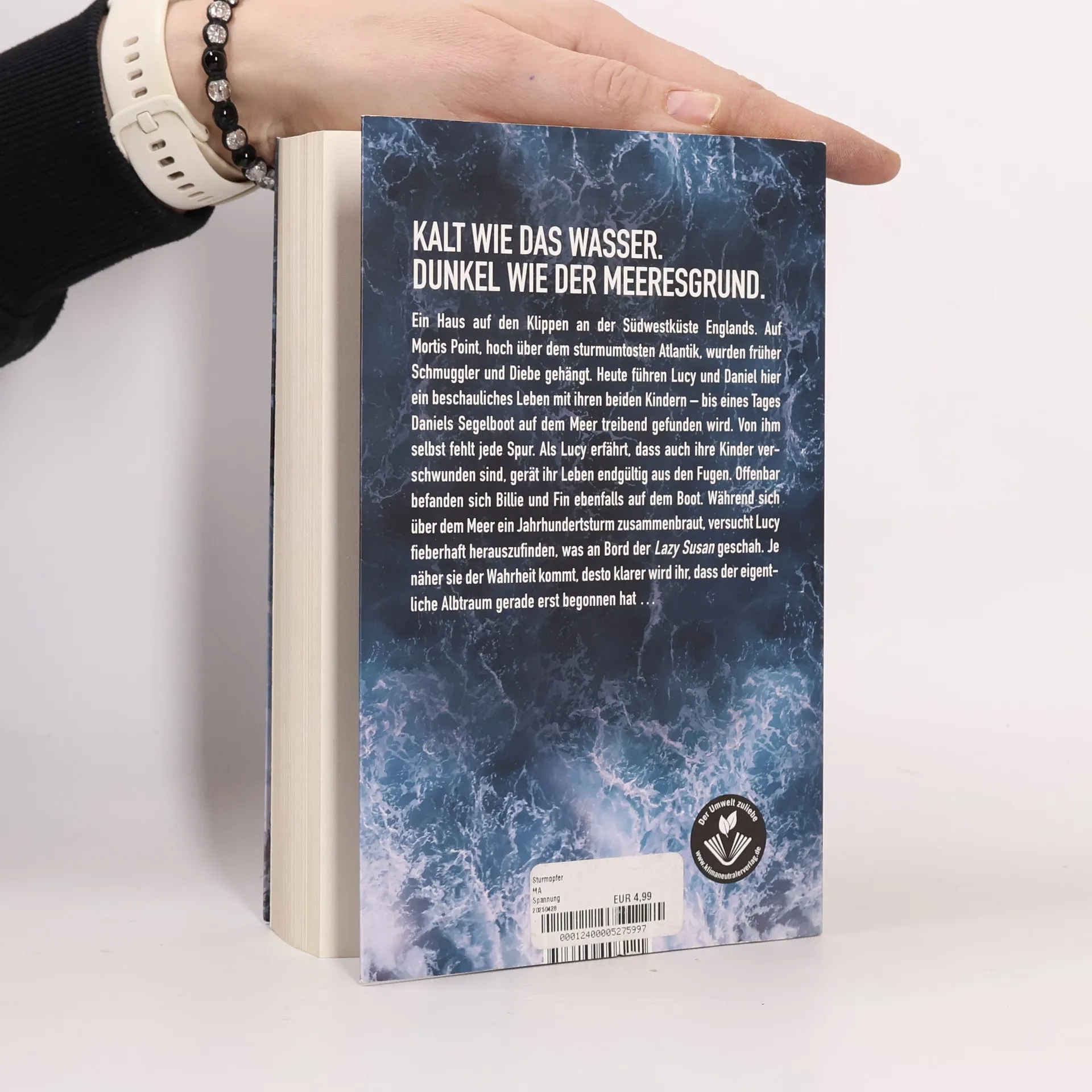 Kalt wie das Wasser. Dunkel wie der Meeresgrund. Ein Haus auf den Klippen an der Südwestküste Englands. Auf Mortis Point, hoch über dem sturmumtosten Atlantik, wurden früher Schmuggler und Diebe gehängt. Heute führen Lucy und Daniel hier ein beschauliches Leben mit ihren beiden Kindern – bis eines Tages Daniels Segelboot auf dem Meer treibend gefunden wird. Von ihm selbst fehlt jede Spur. Als Lucy erfährt, dass auch ihre Kinder verschwunden sind, gerät ihr Leben endgültig aus den Fugen. Offenbar befanden sich Billie und Fin ebenfalls auf dem Boot. Während sich über dem Meer ein Jahrhundertsturm zusammenbraut, versucht Lucy fieberhaft herauszufinden, was an Bord der Lazy Susan geschah. Je näher sie der Wahrheit kommt, desto klarer wird ihr, dass der eigentliche Albtraum gerade erst begonnen hat …