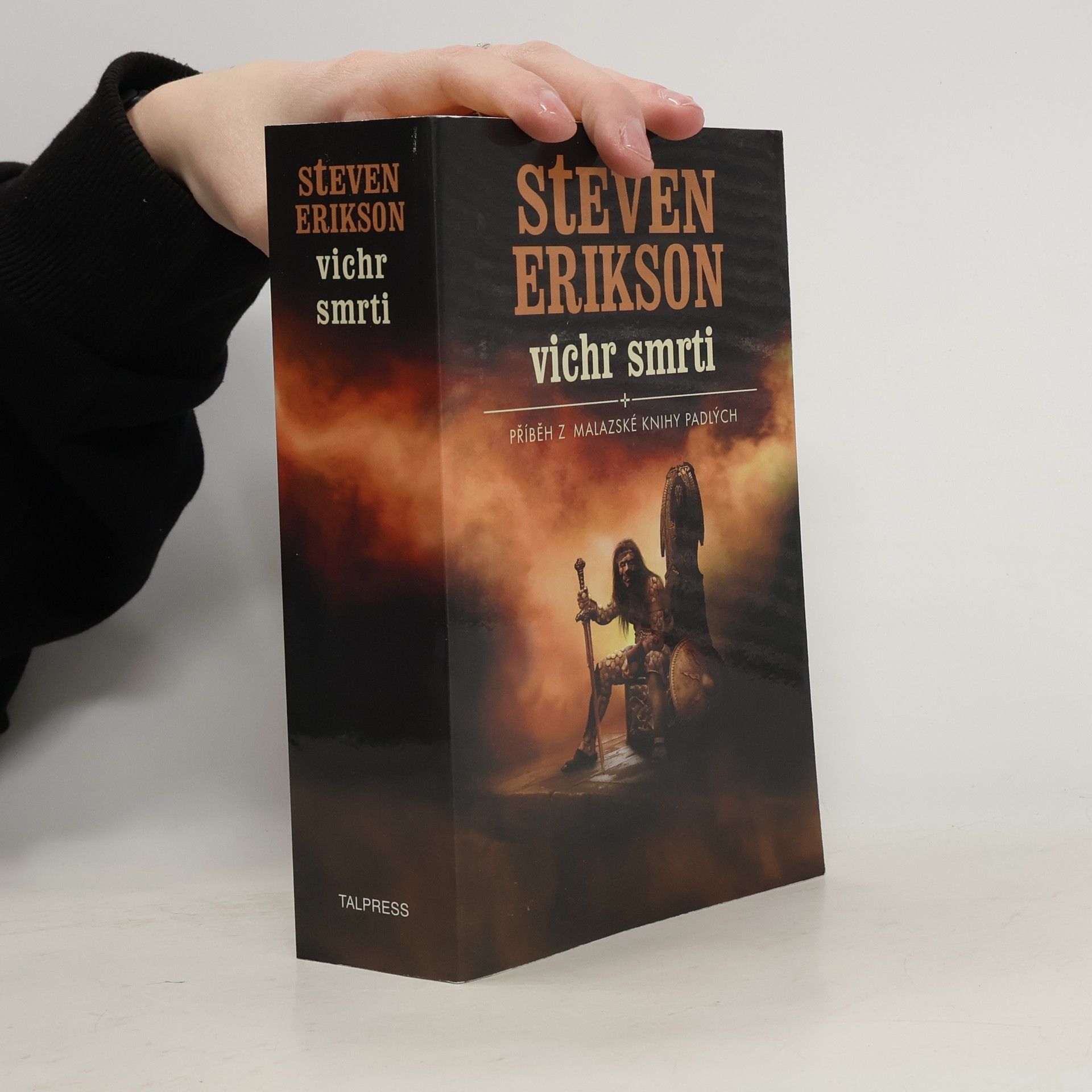Lederská říše, poháněná korupcí a sobectvím, se rozpadá. Císař Rhulad Sengar, obklopený pochlebníky a agenty svého úplatného kancléře, se propadá do šílenství. Všude se kují pikle. Říšská tajná policie vede zastrašovací válku proti vlastnímu lidu. Bloud, kdysi prozíravý bůh, náhle přestává vidět budoucnost. Chaos a děsivé síly se stahují ze všech stran. Na tomto rozbouřeném, zrádném pozadí se snaží říši opustit skupinka uprchlíků. Jedním z nich je Strach Sengar, hledající duši Skabandariho Krvookého, protože by tak mohl zachránit svého bratra císaře. Jenomže s ním putuje Skabandariho nejstarší a nejzatrpklejší nepřítel: Silchas Zmar, bratr Anomandera Dlouhý vlas. A nezahojené rány v jeho zádech nezpůsobil nikdo jiný než právě Skabandari. Motivy Silchase Zmara rozhodně nejsou jasné. A k domovu se blíží velká edurská flotila s válečníky vybranými z bezpočtu národů. A s ní připlouvají i Karsa Orlong a Icarium Zloděj životů – a oba hodlají zkřížit zbraně se samotným císařem. Jenomže při plavbě přes polovinu světa za sebou Tiste Edur zanechali záplavu krve. A taková krutost nemůže zůstat bez odezvy. Někdo za to musí zaplatit, pro někoho to zdaleka neskončilo… Vichr smrti je surový, drásavý příběh o válce, zradě a temné, nezvladatelné magii. Je to nanejvýš nápaditá epická fantasy vyprávěná tím nejnapínavějším stylem.