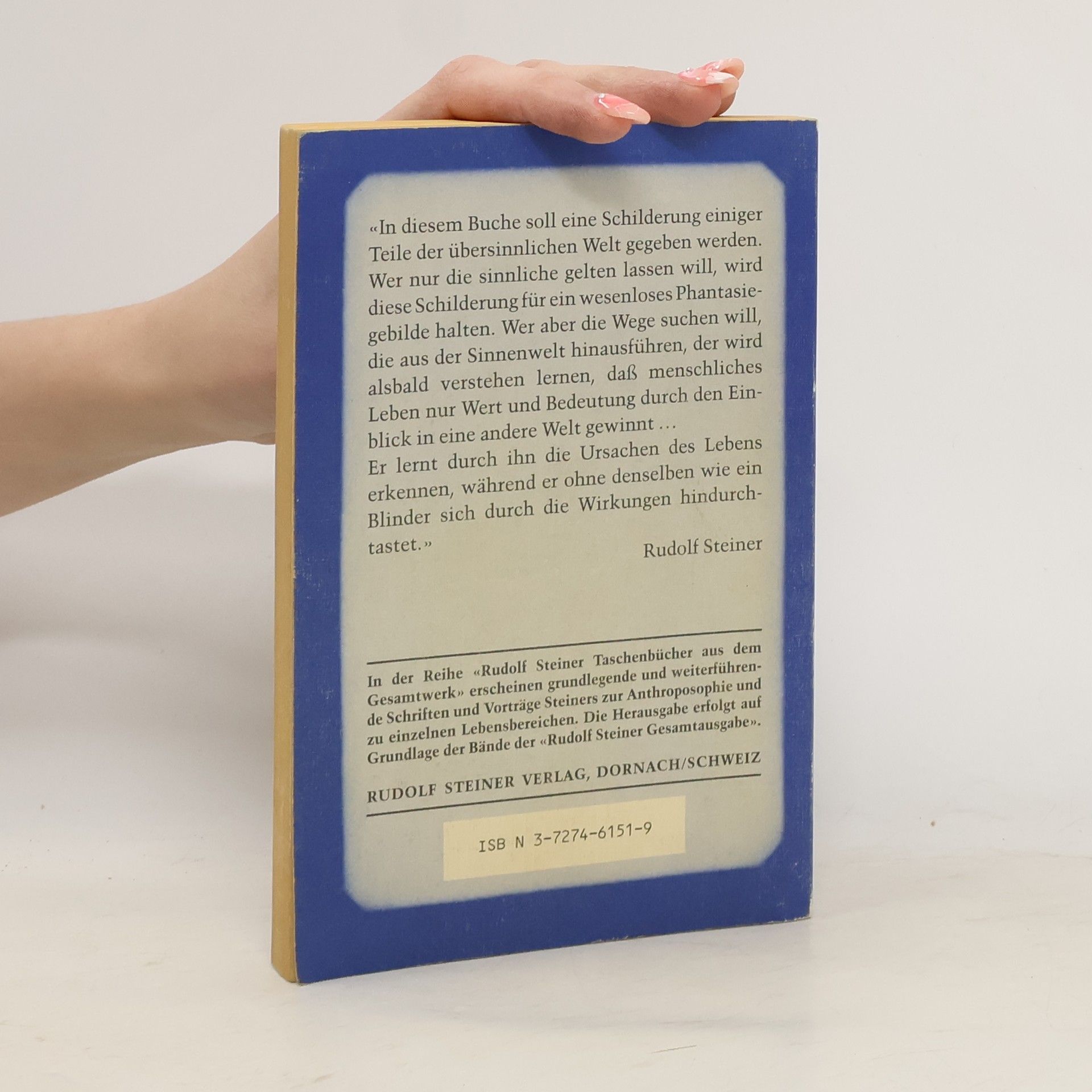 Die mystische Einführung in Steiners Werke (die andere ist seine Philosophie der Freiheit). Diese grundlegende Schrift Rudolf Steiners empfiehlt sich als Ausgangspunkt zu einem systematischen Studium der Anthroposophie. In ihr wird die leibliche, seelische und geistige Wesenheit des Menschen behandelt und die seelische und geistige Welt und deren Verbindungen mit der physischen Welt beschrieben. Einsichten in das Leben zwischen Tod und neuer Geburt werden gegeben und grundlegende Gedanken zu Reinkarnation und Karma entwickelt. Abschließend wir «Der Pfad der Erkenntnis» der höheren Welten in seinen Grundzügen geschildert. «In diesem Buche soll eine Schilderung einiger Teile der übersinnlichen Welt gegeben werden. Wer nur die sinnliche gelten lassen will, wird diese Schilderung für ein wesenloses Phantasiegebilde halten. Wer aber die Wege suchen will, die aus der Sinnenwelt hinausführen, der wird alsbald verstehen lernen, daß menschliches Leben nur Wert und Bedeutung durch den Einblick in eine andere Welt gewinnt … Er lernt durch ihn die Ursachen des Lebens erkennen, während er ohne denselben wie ein Blinder sich durch die Wirkungen hindurchtastet.» -- Rudolf Steiner