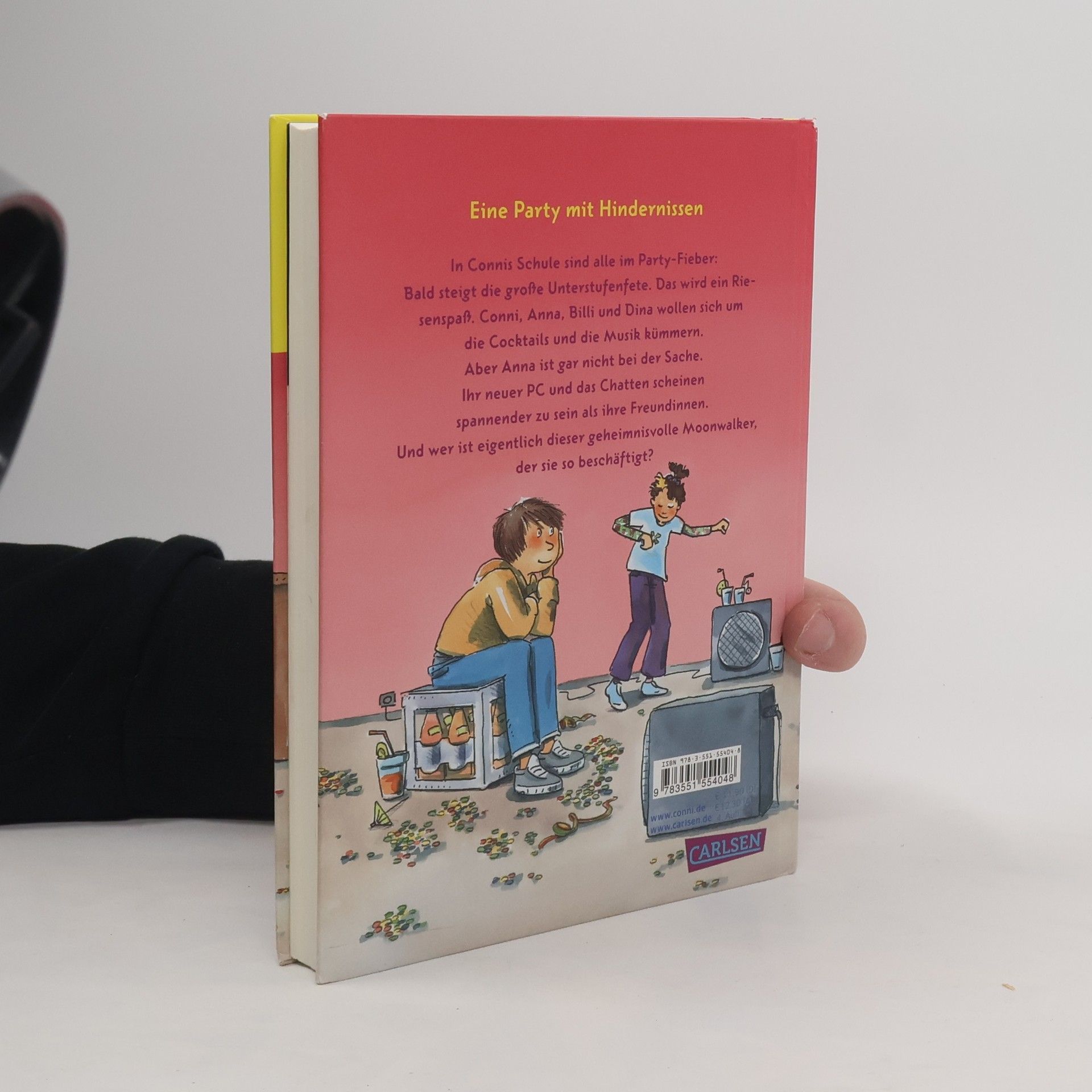 In Connis Schule sind alle im Party-Fieber: Bald steigt die große Unterstufenfete. Das wird ein Riesenspaß. Conni, Anna, Billi und Dina wollen sich um die Cocktails und die Musik kümmern. Aber Anna ist gar nicht bei der Sache. Ihr neuer PC und das Chatten scheinen spannender zu sein als ihre Freundinnen. Und wer ist eigentlich dieser geheimnisvolle Moonwalker, der sie so beschäftigt?