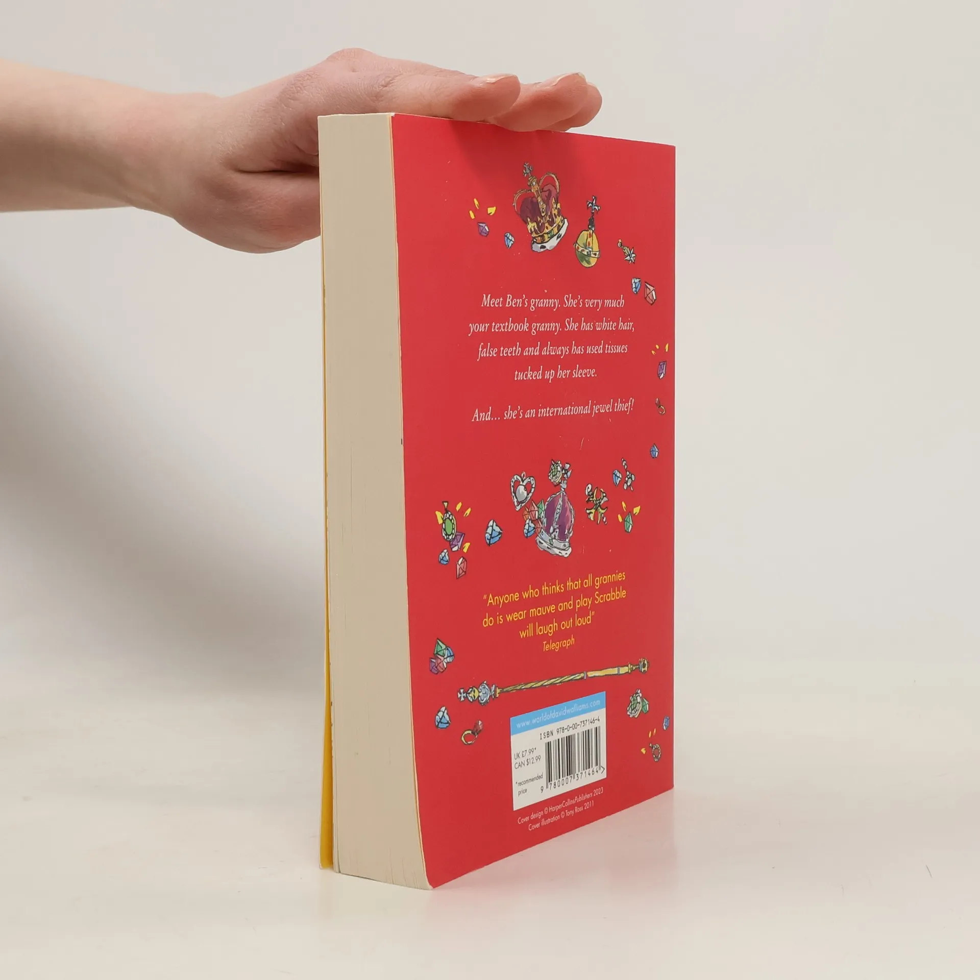 A story of prejudice and acceptance, funny lists and silly words, this new book has all the hallmarks of David's previous bestsellers.Our hero Ben is bored beyond belief after he is made to stay at his grandma's house. She's the boringest grandma ever: all she wants to do is to play Scrabble, and eat cabbage soup. But there are two things Ben doesn't know about his grandma.1) She was once an international jewel thief.2) All her life, she has been plotting to steal the crown jewels, and now she needs Ben's help...