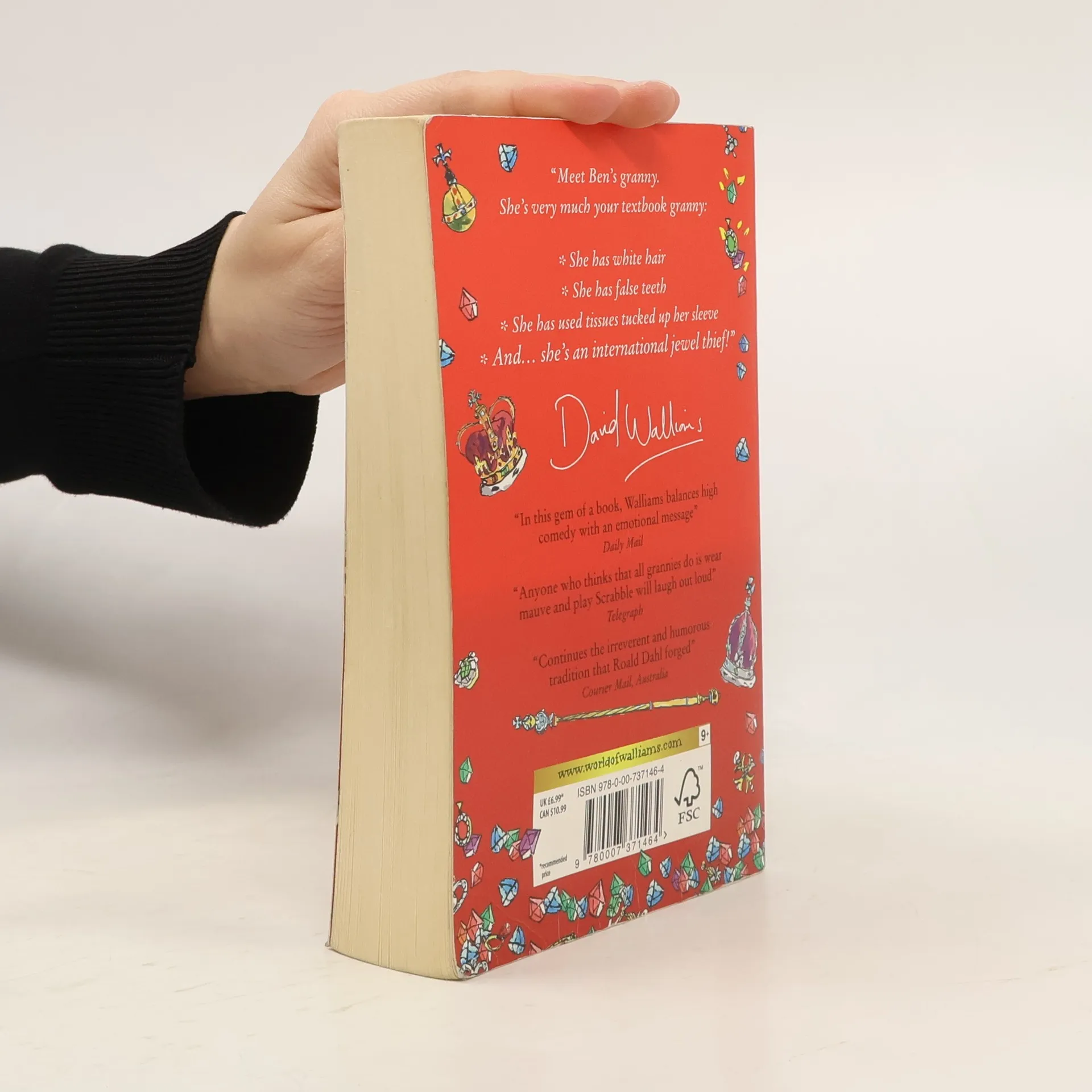 A story of prejudice and acceptance, funny lists and silly words, this new book has all the hallmarks of David's previous bestsellers.Our hero Ben is bored beyond belief after he is made to stay at his grandma's house. She's the boringest grandma ever: all she wants to do is to play Scrabble, and eat cabbage soup. But there are two things Ben doesn't know about his grandma.1) She was once an international jewel thief.2) All her life, she has been plotting to steal the crown jewels, and now she needs Ben's help...