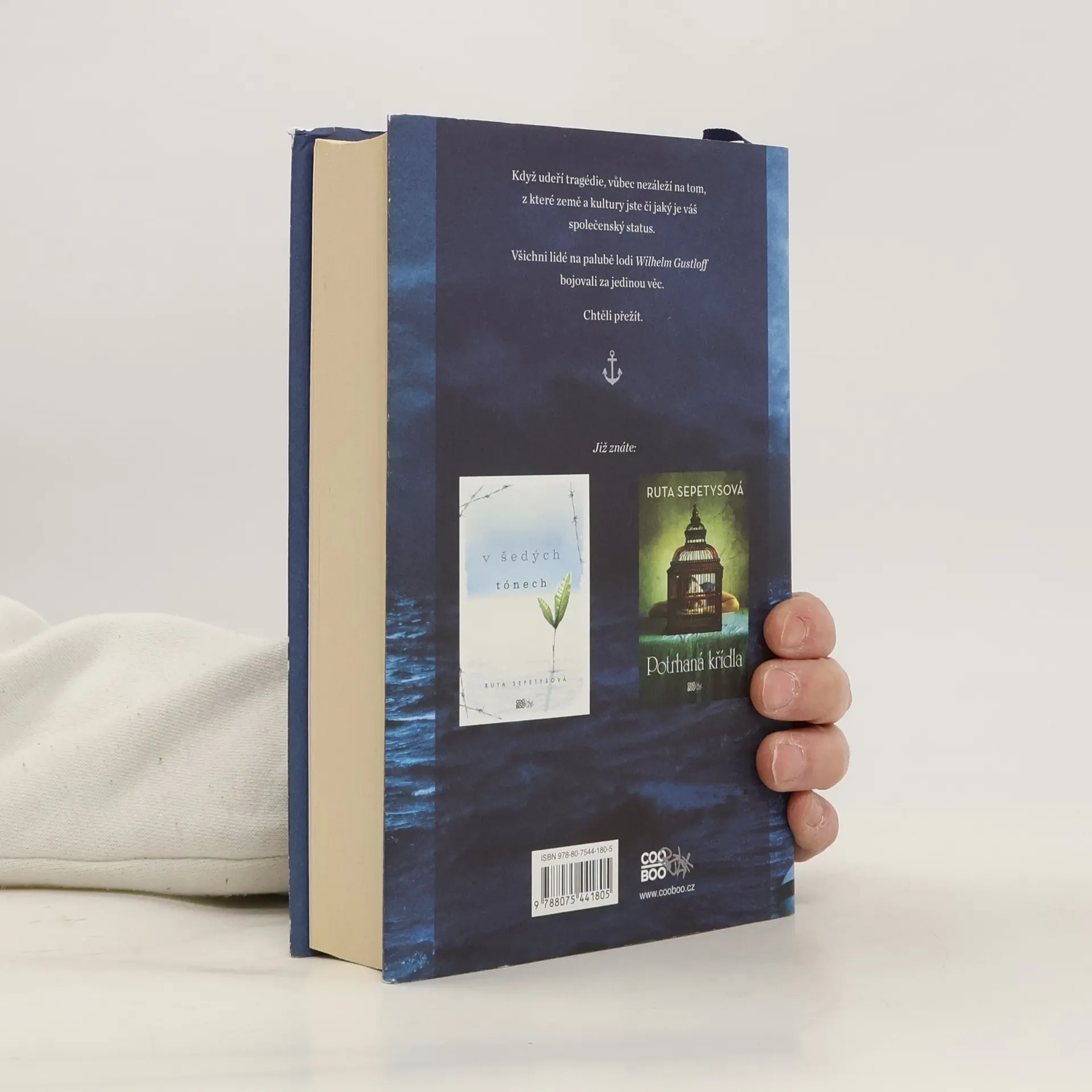 Autorka světového bestselleru V šedých tónech vrhá na světlo jednu z nejhorších, přesto téměř neznámých námořních katastrof. Zima roku 1945. Čtyři mladí lidé. Čtyři tajemství. Druhá světová válka chýlí ke konci, poblíž Východního Pruska se tisíce uprchlíků vydalo na pouť za svobodou a většina z nich má co skrývat. Mezi nimi i Joana, Emilia a Florian, jejichž cesty se zkřížily na lodi, která slibovala spásu. Jmenovala se Wilhelm Gustloff. Přišli každý odjinud, ale všechny je žene a pomalu dohání neštěstí, lži a… válka. Když se svoboda zdá na dosah, udeří tragédie. V tu chvíli je naprosto jedno, z které jste země a kultury či jaký je váš společenský status. Všech deset tisíc lidí na palubě bojuje za jedinou věc: Chtějí přežít. Autorka knihy V šedých tónech se vrací do dob druhé světové války se svým novým románem, jenž líčí jednu z nejhorších – přesto téměř neznámých – válečných tragédií.