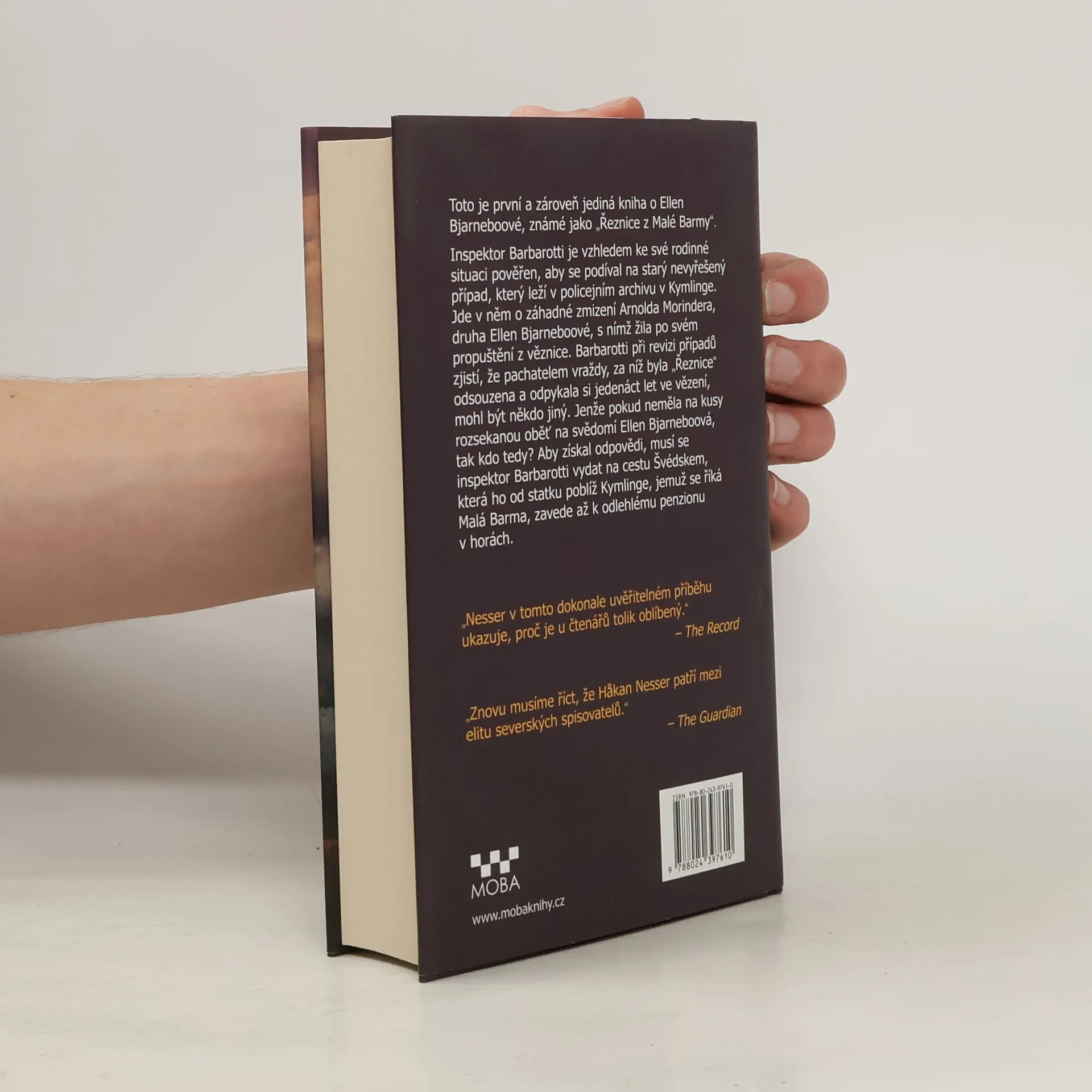 Toto je první a zároveň jediná kniha pojednávající o Ellen Bjarneboové, známé jako „Řeznice z Malé Barmy“. Inspektor Barbarotti je vzhledem ke své rodinné situaci pověřen, aby se podíval na starý nevyřešený případ, který leží v policejním archivu v Kymlinge. Jenže pokud nemá na kusy rozsekanou oběť vraždy z roku 1989 na svědomí Ellen Bjarneboová, která byla za tento čin odsouzena a odpykala si jedenáct let ve vězení, tak kdo tedy? Inspektor Barbarotti je nucen vydat se na cestu Švédskem, která ho od statku poblíž Kymlinge, kterému se říká Malá Barma, zavede až k odlehlému penzionu v horách.