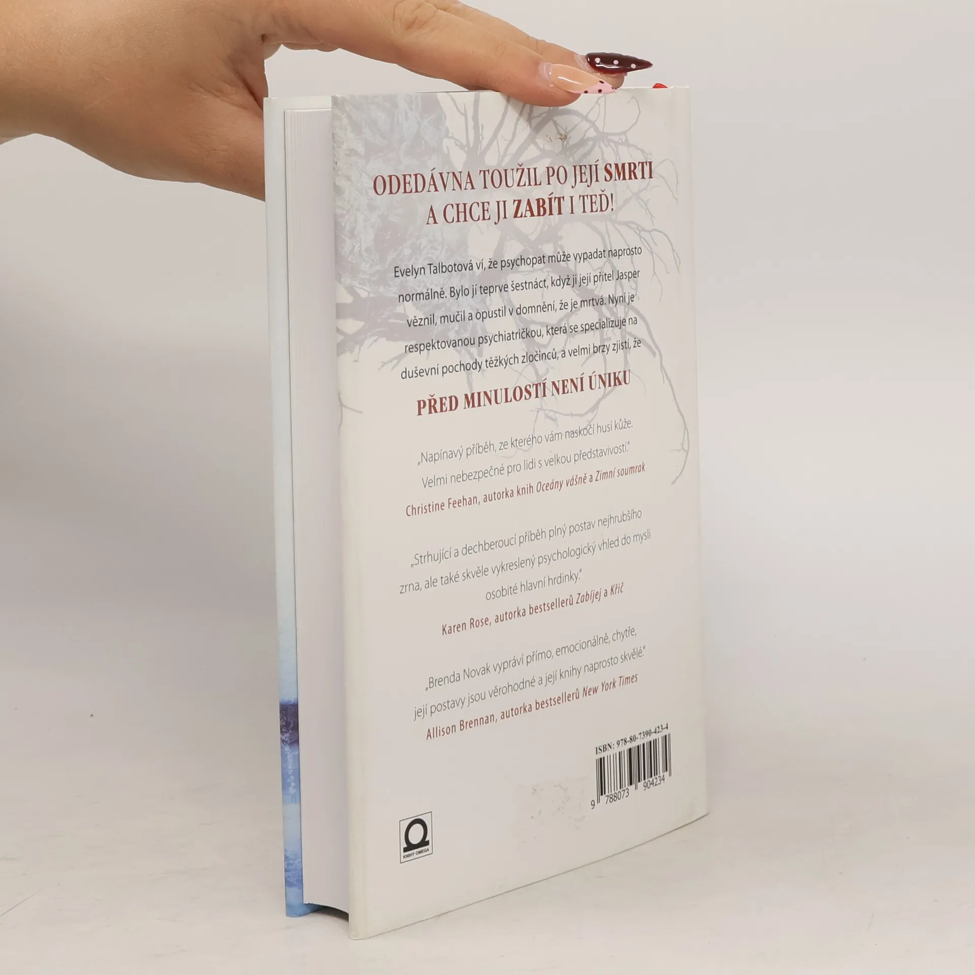 První díl elektrizující nové série Brendy Novak, autorky bestsellerů New York Times. PÁTRÁNÍ PO SÉRIOVÉM VRAHOVI Evelyn Talbot ví, že psychopat může vypadat naprosto normálně. Bylo jí teprve šestnáct, když jí její přítel Jasper věznil a mučil, a opustil ji v domnění, že je mrtvá. Nyní je respektovanou psychiatričkou, která se specializuje na myšlení zločinců, Evelyn pracuje v Hanover House, léčebném zařízení s maximální ostrahou, které se nachází v malém městečku na Aljašce. Má rozpory se seržantem Amarokem, který je přesvědčen, že Hanover je pro místní obyvatele hrozbou, i když osobně je ke krásné Evelyn velmi přitahován a hrozí, že se jeho svět převrátí vzhůru nohama. ZAČÍNÁ PRCHAT PŘED SVOU MINULOSTÍ Život ve městě se změní v noční můru poté, kdy je nalezeno zmrzačené tělo místní ženy. Pro Amaroka je to důkaz, který potřeboval: Hanover se musí zrušit. Evelyn má důvod k obavám, že se jí tento zločin osobně dotýká, že vrah, který jí straší ve snech, si jí opět našel, a že život, který si tak pečlivě vybudovala, už nikdy nebude takový, jaký byl.
