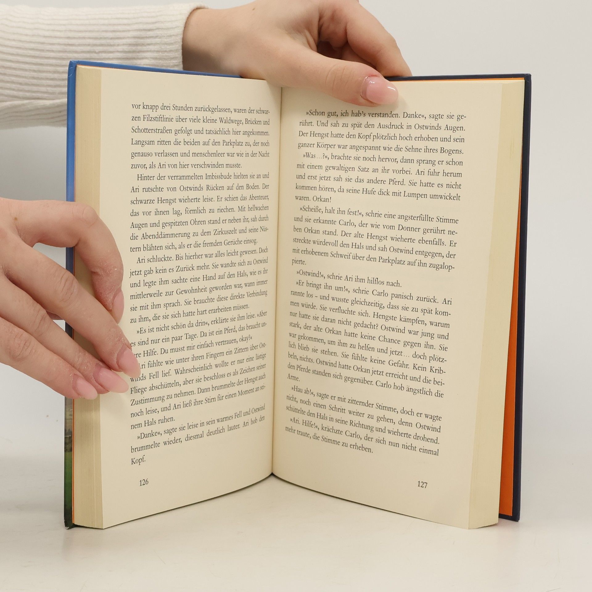 Der große Orkan Ein Sommersturm zieht über Kaltenbach auf und bringt einen Pferde-Wanderzirkus mit sich, der auf dem Gestüt Schutz vor dem Unwetter sucht. Und obwohl Ari von der faszinierenden Welt des Kunstreitens magisch angezogen wird, sieht sie auch die Schattenseiten, die das Zirkusleben für die Pferde bereit hält. Mit Ostwinds Hilfe fasst sie den waghalsigen Plan, einem alten Showpferd zu helfen – dann kehrt endlich Mika überraschend zurück ...